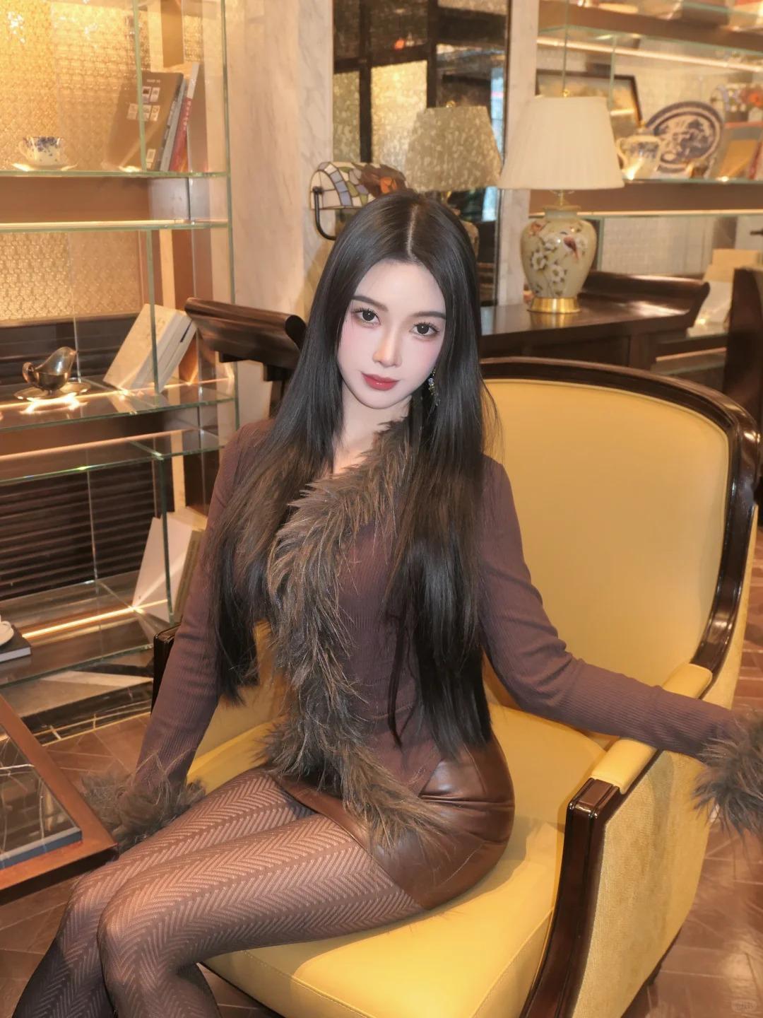 记录我的2026这套同色系棕色搭配堪称冬日温柔模板,软乎乎又精致感拉满,完全不出错。鹿皮绒毛毛外套自带慵懒滤镜,触感细腻蓬松,裹在身上暖意十足,还能衬得肤色愈发通透。搭配皮裙套装,皮质的挺括中和了毛绒的软糯,甜酷平衡得恰到好处,勾勒出灵动身姿。人字纹棕色袜子是点睛之笔,纹理质感加分,与棕色小高跟形成呼应,纵向延伸比例,让双腿线条更优美。整体造型统一和谐,细节满满,不管是约会还是日常出行,都能尽显温柔气质,氛围感直接拉满。高清美女好身材性感女神棕色系女友穿搭