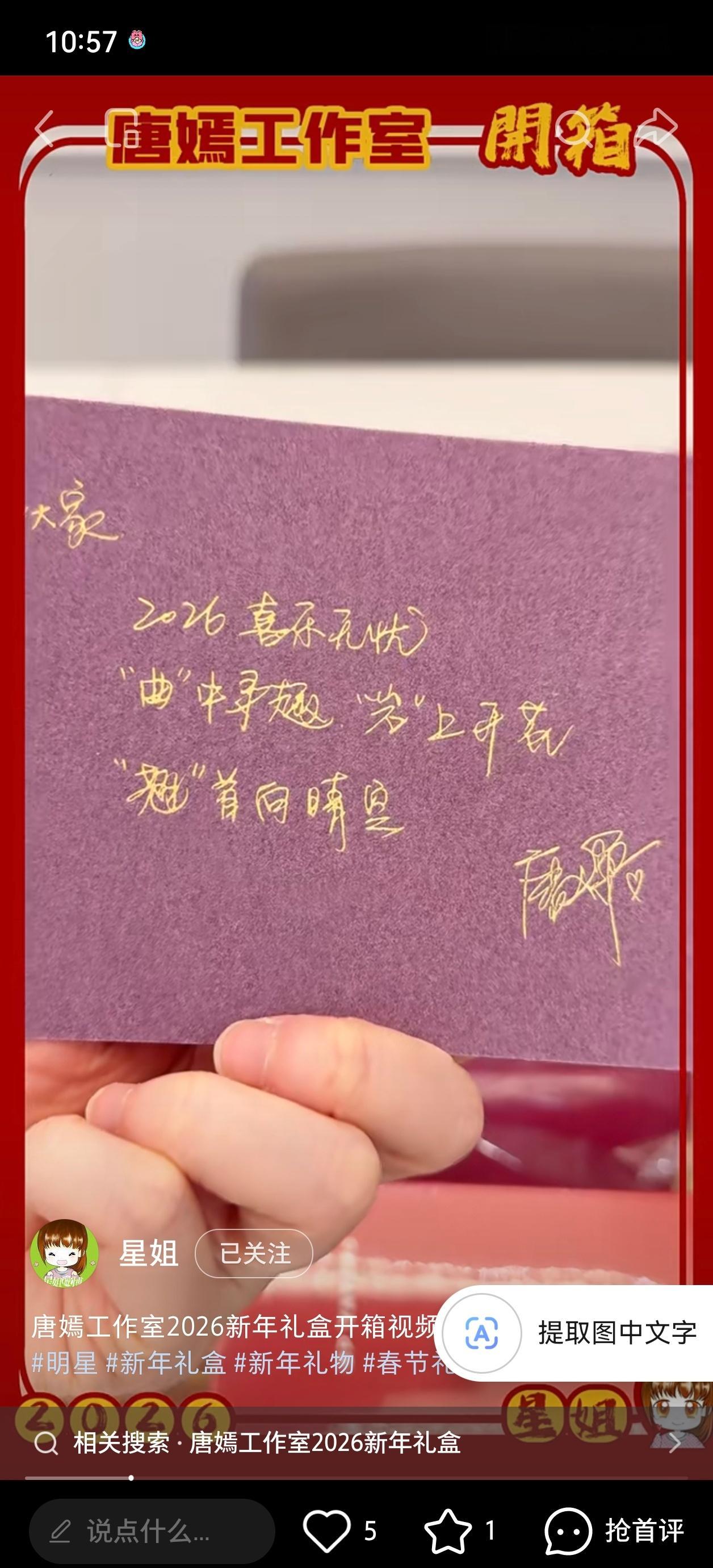 快来看唐嫣2026的新年礼盒!唐嫣手写:2026 喜乐无忧曲中寻趣 岩上开花翘首向晴空
