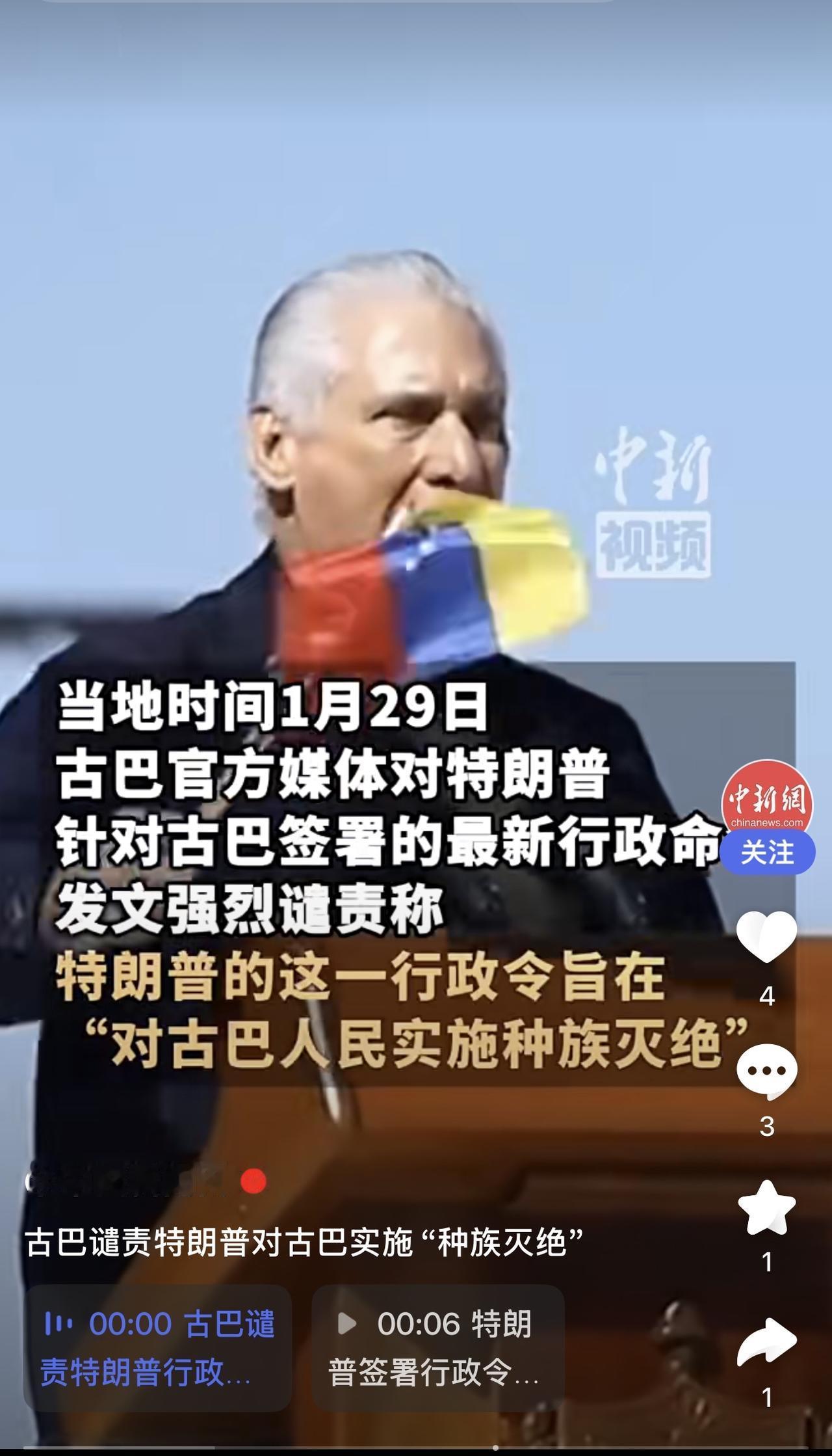 特朗普1月29日签署行政命令,以“国家紧急状态”为依据,将对向古巴提供石油的国家的商品加征关税。 此前美媒曾报道,特朗普政府正在考虑全面封锁古巴的石油进口。