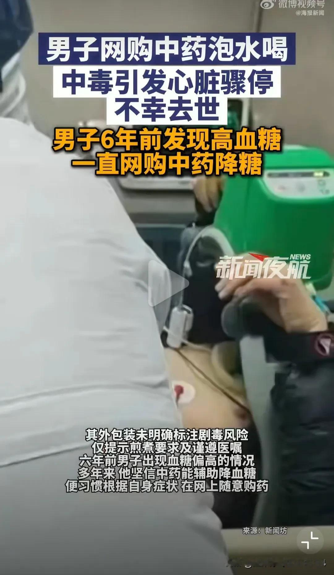 作为一名中医爱好者,刷到有人因网购中药冲泡,导致急性中毒去世,感到很震惊!不论中西医,最忌乱吃药! 当事人不是老人,也不是没文化的乡下人,而是一位35岁想控制血糖的上海人! 他患高血糖6年,控制效果不佳,但多年来他坚信中药能辅助降血糖,便习惯网购囤积各类药材自行使用。 这次他从直播间买了“四川江油附片”,自行用热水冲泡服用,导致乌头碱中毒,引发心脏骤停。经市东医院重症团队抢救8天也没救回来,最终死亡! 自学中医控制血糖,他错的离谱: 1,自己吃药,不咨询专业大夫。中医博大精深,没有医学院和师傅的系统性教学、带着积累经验,很难融会贯通上手! 2,自学中医,也最忌粗心大意。附子在中药中也是剧毒,入药基本都要炮制;其次中药配方讲究“君臣佐使”,不是一种药就治百病的;最后,中药材煮的时长、用量也都有说法定量。而这些都是最基本的中医常识,这位35岁的上海人根本就是啥也不懂。 3,要想省钱,给自己配药,一定要给正规大夫先看下药方。千人千方,每个阶段的病情不一样,药方也不一样,不要拿自己命不当一回事,先给正规大夫查看,切记切记。 中医是我们中国最伟大的文化之一,不想它被误解、抹黑!愿我们都能真正读懂它,普惠大众!