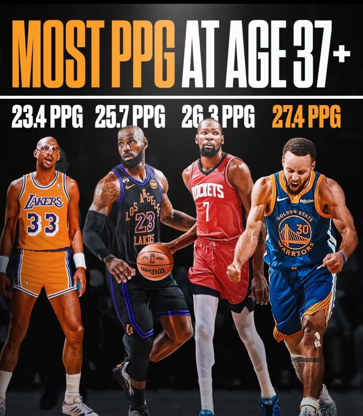 37岁以上球员单赛季最高场均得分:2025-26赛季斯蒂芬·库里-27.4分2025-26赛季凯文·杜兰特-26.3分2024-25赛季勒布朗·詹姆斯-24.4分1985-86赛季卡里姆·阿卜杜尔-贾巴尔-23.4分。 当职业生涯步入暮年,NBA球员的得分爆发力是否必然走向衰退?库里在2025-26赛季交出27.4分的场均答卷,杜兰特同期砍下26.3分,这两个数字与传统认知中"37岁后竞技能力断崖式下滑"形成强烈反差,更何况詹姆斯上赛季24.4分、贾巴尔在1985-86赛季23.4分的表现同样摆在眼前,这份跨越40年的得分榜单,究竟揭示了老将竞技延续性的何种本质规律? 光看这四组数据的时间跨度就够让人琢磨一阵子,库里和杜兰特同处2025-26赛季,詹姆斯的数据来自2024-25赛季,贾巴尔则要追溯到1985-86赛季,40年时间里四位球员均在37岁以上完成单赛季高效得分,这种延续性本身就在印证一件事,老将高效得分并非偶然个例,而是可以复制的竞技现象,本来想着年龄增长必然带来能力下滑,但后来发现这些顶级球员用实际表现打破了这种刻板印象。 再看得分数值的梯度分布,库里27.4分领跑,杜兰特26.3分紧随其后,詹姆斯24.4分、贾巴尔23.4分形成梯度,榜首与榜尾相差4分,但所有人的得分都维持在相当高的水准线上,这种数值梯度的紧密性说明37岁以上球员的得分峰值存在稳定区间,而不是某个球员的极端个案,四位球员分别担任控卫、小前锋、中锋等不同位置,不同场上角色均能在37岁后维持高效得分,位置多样性证明老将得分延续性不受场上角色限制,核心在于个人竞技能力的系统性保持。 这种系统性保持的背后,其实是技术成熟度、比赛阅读能力、身体管理科学性三者协同作用的结果,库里的三分球与无球跑动、杜兰特的中距离与错位单打、詹姆斯的突破与组织串联、贾巴尔的内线技术,得分手段各异但均在37岁后保持高效转化率,贾巴尔所处的1985-86赛季联盟节奏较慢、内线对抗激烈、三分球战术未普及,库里、杜兰特、詹姆斯所处的2024-26赛季则是小球时代、三分球战术主导、攻防转换提速,尽管竞技环境迥异,但四位球员均在各自时代完成高效得分,这种跨时代的一致性恰恰证明了一个共同前提,所有球员均具备将技术优势转化为稳定得分的能力,所有球员均通过科学的身体管理延缓竞技能力衰退,所有球员均在各自时代证明年龄不是得分效率的绝对障碍。 库里27.4分、杜兰特26.3分的2025-26赛季数据,直接证明当代医疗与训练体系对老将竞技延续的支撑作用,贾巴尔23.4分的1985-86赛季数据则证明即便在医疗条件相对落后的年代,顶级球员仍可通过技术成熟度对抗年龄衰退,这些事实共同指向老将高效得分的可持续性这一核心结论,而这份榜单对NBA历史的影响,恰恰可以从结果倒推出数据产生的直接诱因。 这份榜单重新定义了37岁以上球员的竞技天花板,库里27.4分刷新该年龄段单赛季得分纪录,相较贾巴尔的23.4分提升4分,纪录刷新的背后是现代篮球体系对老将技术特点的更优化利用,库里的三分球在当代战术中的价值放大就是最直接的例证,詹姆斯24.4分、杜兰特26.3分证明37岁后仍可担任球队核心得分手,这一诱因源于球员个人对身体管理、技术打磨的长期投入,榜单跨越40年的时间跨度证明老将高效得分并非时代特例,贾巴尔在1985-86赛季的23.4分为后续球员树立了技术成熟度可对抗身体衰退的先例,这一先例的延续进一步印证了篮球智商与技术积累在职业生涯后期的核心价值。 从库里27.4分刷新纪录这个节点来看,这份榜单不仅是数据记录,更是NBA历史对老将竞技价值的系统性肯定,它为后续球员提供了职业生涯延续的信心支撑,也为联盟球队在老将使用策略上提供了决策依据,科学的身体管理与技术打磨可将职业生涯巅峰期延长至37岁甚至更久,这对球员层面是直接启示,对球队层面则是老将使用策略的数据支撑,鼓励球队在阵容构建中合理配置经验型球员,对联盟层面更是深化了篮球竞技不唯年龄论的价值导向。 当库里在2025-26赛季以27.4分刷新37岁以上球员得分纪录时,他所延续的不仅是贾巴尔在1985-86赛季开创的传统,更是NBA历史对竞技生命力可通过智慧与坚持突破生理极限这一信念的代际传承,而这份传承的价值正是篮球运动超越数据本身的精神内核所在。