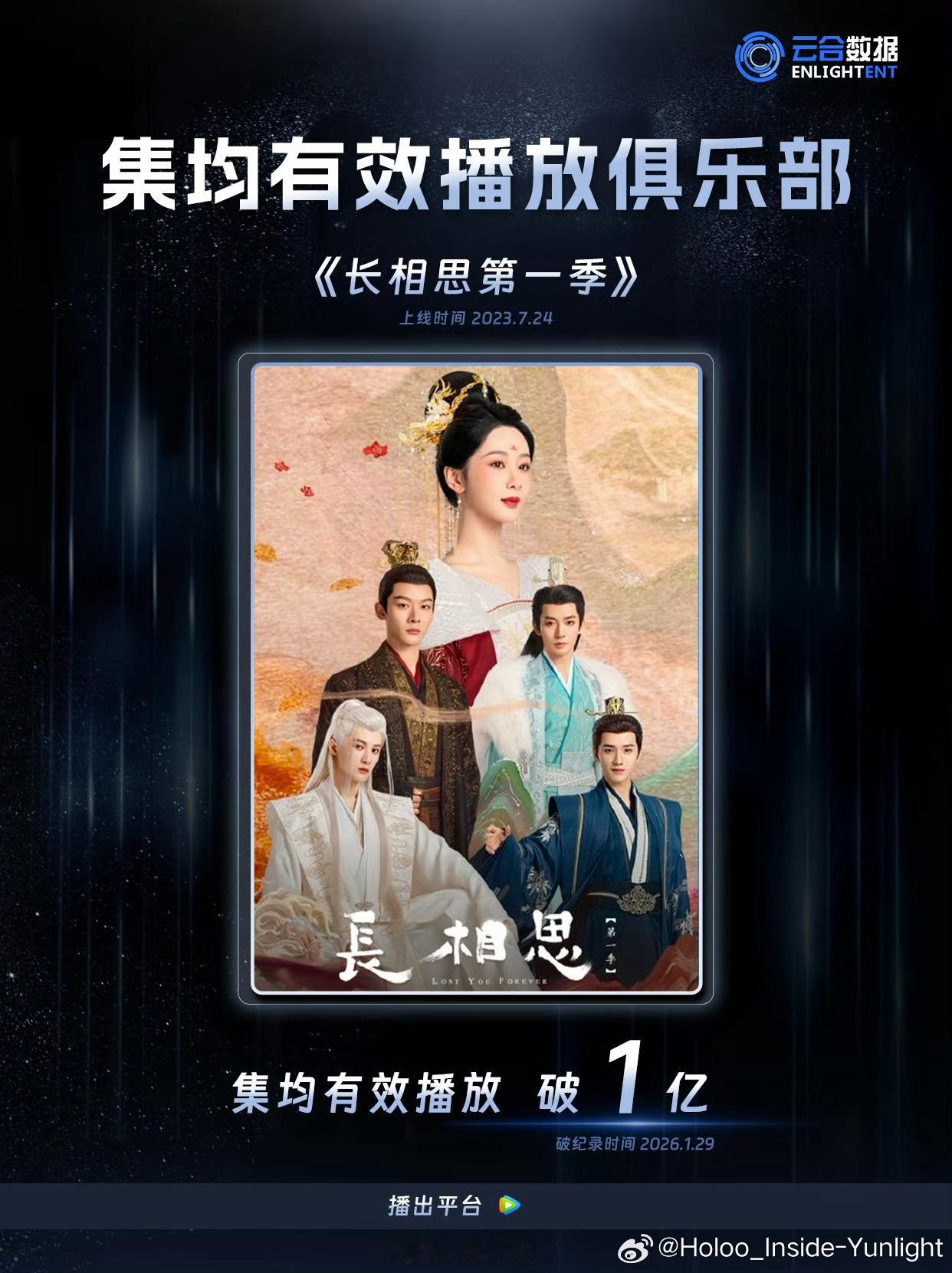 杨紫、张晚意、檀健次、邓为、王弘毅的《长相思》第一季云合集均破一亿了,从2023.7.24到2026.1.29,什么水平🤔🤔🤔