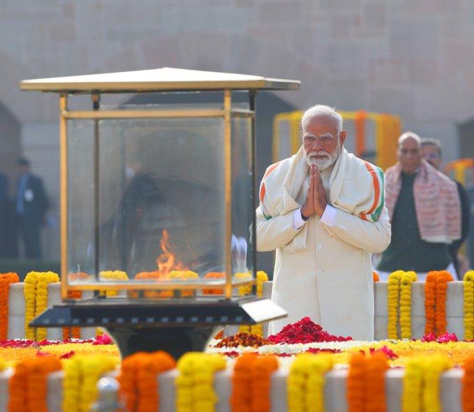 印度总理莫迪:在拉杰加特向圣雄甘地致敬。他永恒的理想将继续指引我们国家的道路。我们重申对他的原则的承诺,以及建设一个植根于正义、和谐和服务人类的印度的决心。