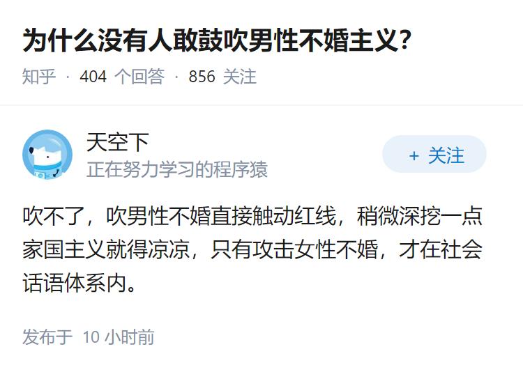 为什么没有人敢鼓吹男性不婚主义? -----------------------