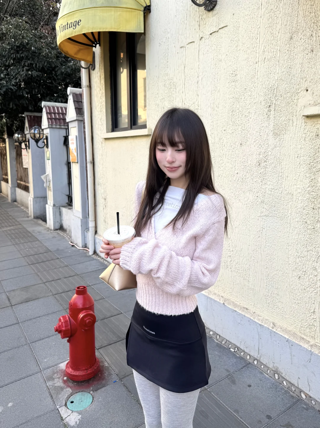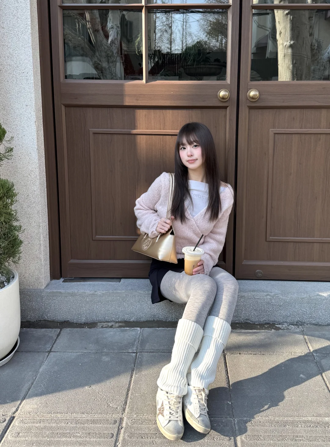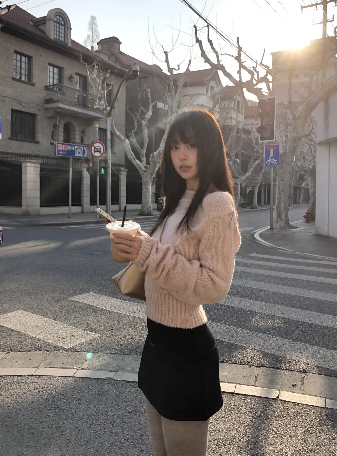 韩系氛围感超浓的一天 果然黑白灰穿腻后 每隔一段时间就会重新爱上粉色 好喜欢这个粉粉糯糯的毛衣 淡淡的接近白色 超温柔 可以单穿也可以搭配打底衫 超显白! 温柔小甜心来咯