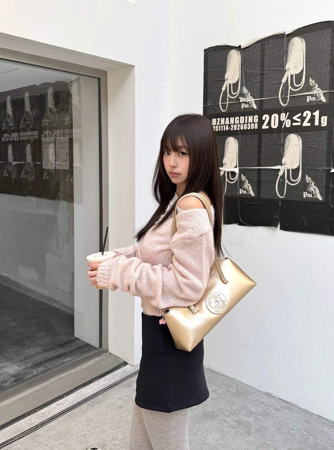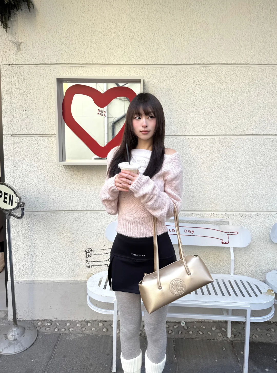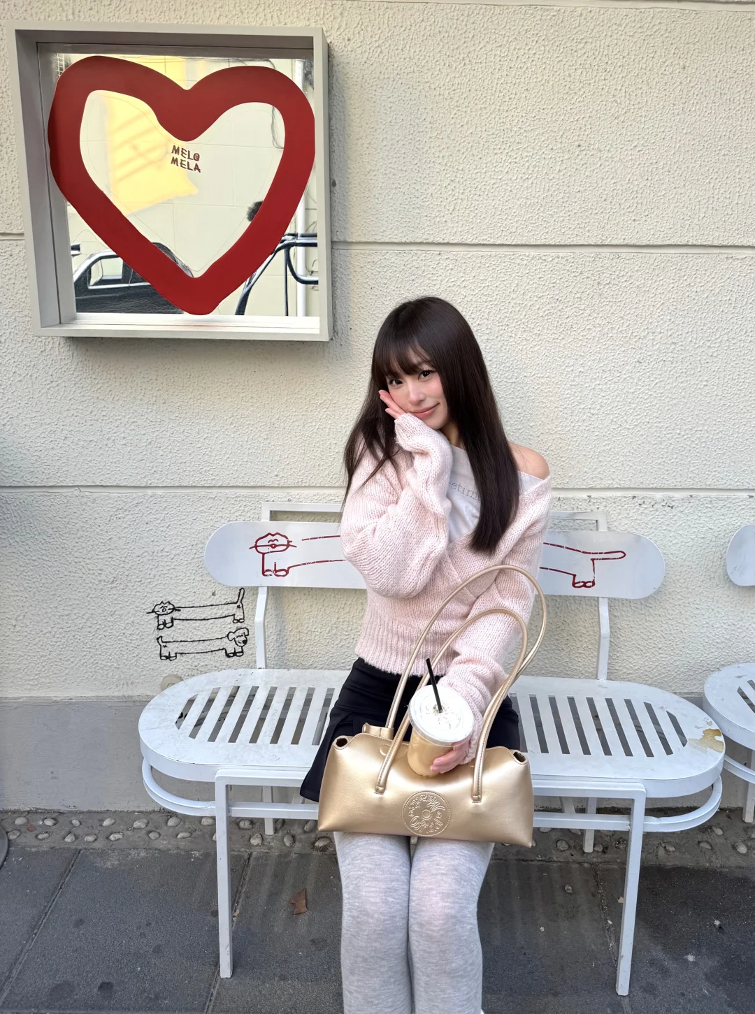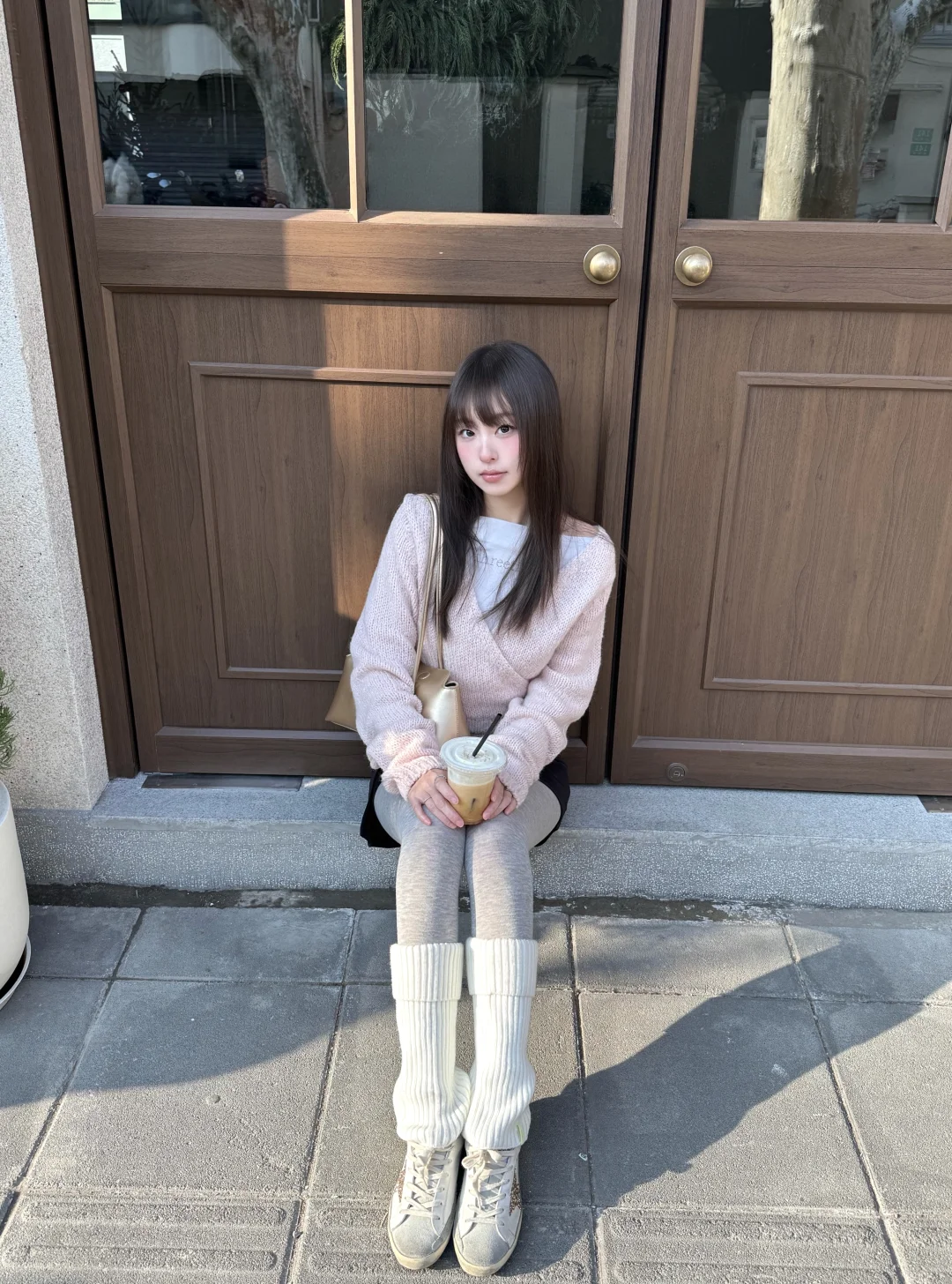 韩系氛围感超浓的一天 果然黑白灰穿腻后 每隔一段时间就会重新爱上粉色 好喜欢这个粉粉糯糯的毛衣 淡淡的接近白色 超温柔 可以单穿也可以搭配打底衫 超显白! 温柔小甜心来咯