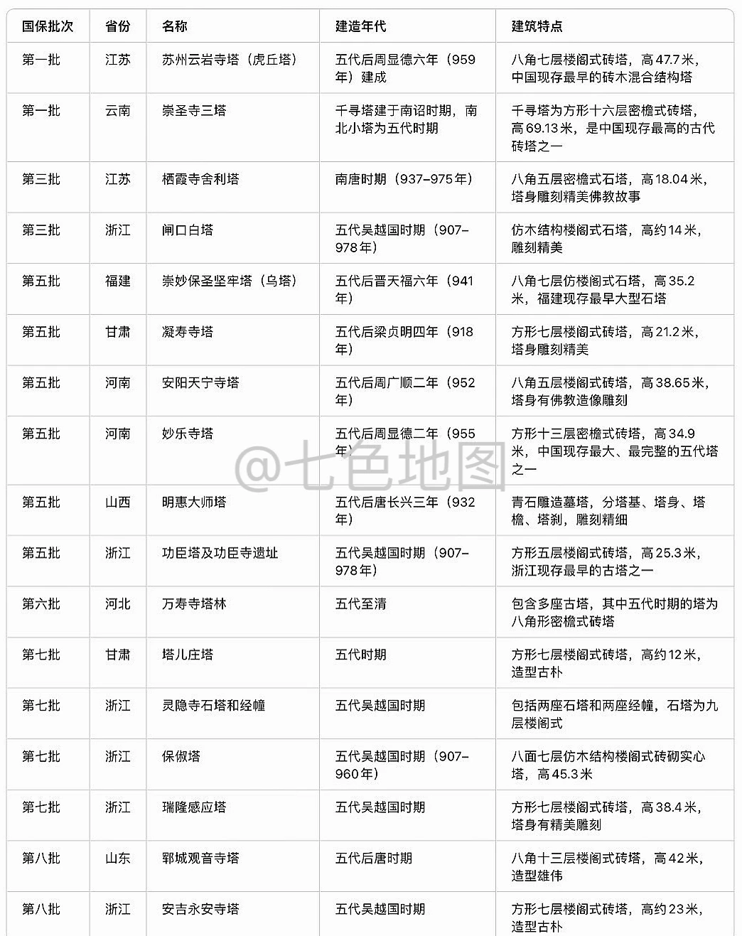 五代十国精华古塔一览表,如图2。