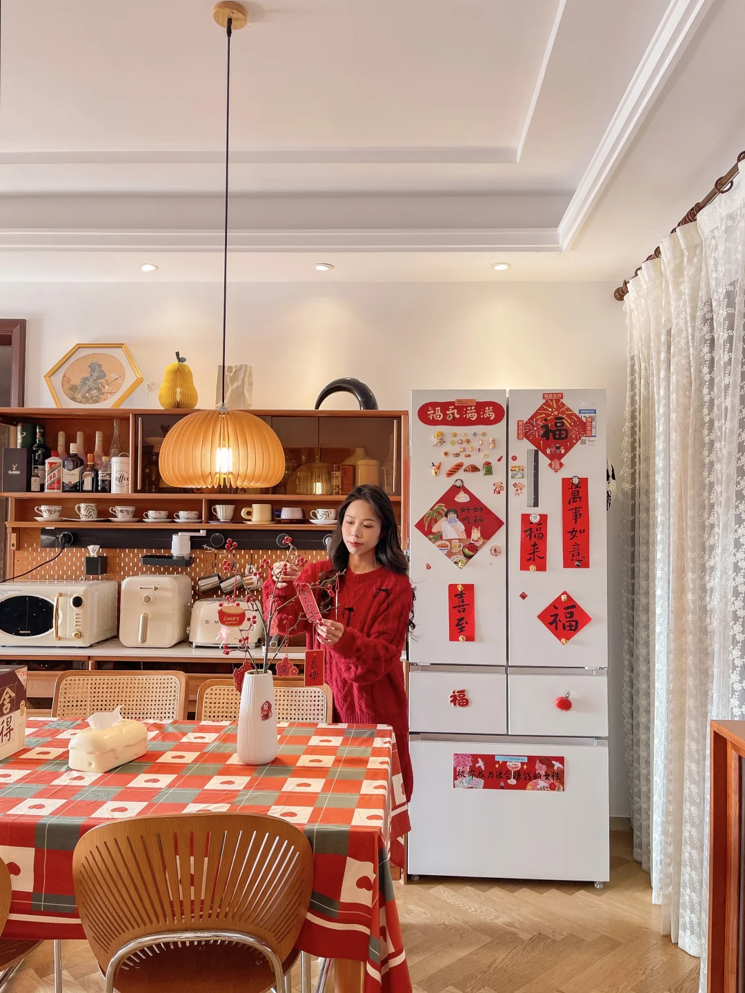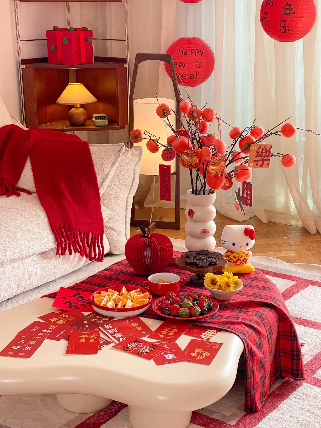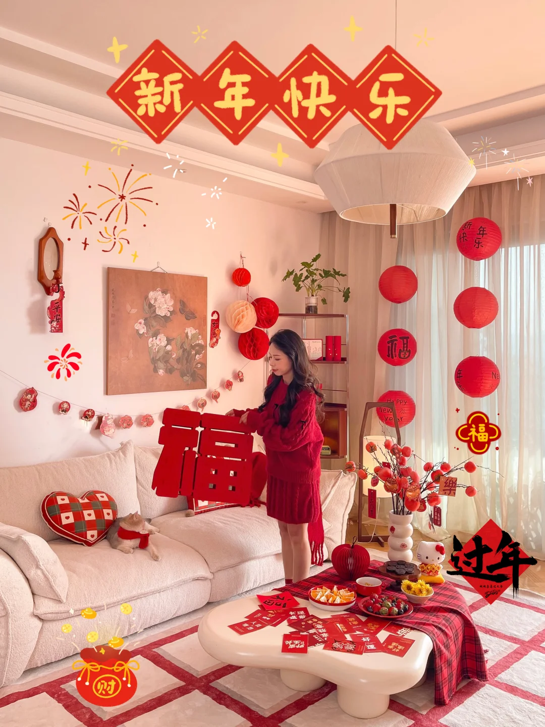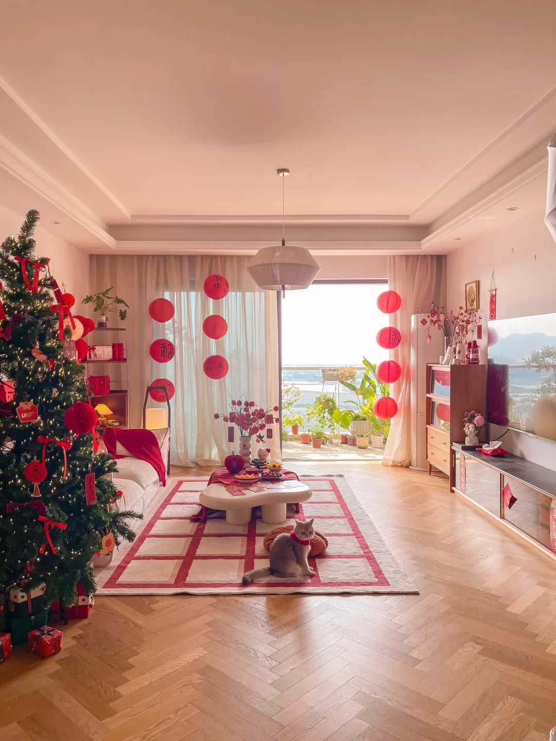 🏮把温柔的原木风客厅 染上一抹热烈的新年红 大红的“福”字往沙发一靠 红灯笼串在窗边摇摇晃晃 连茶几上都铺满了红包和果盘。 · 🏮暖乎乎的米色沙发 搭配红格纹抱枕 和满室的红撞出松弛又热闹的年味 不用复杂的装饰 一点红就能让家的温度翻番 · 🏮在熟悉的烟火气里 等新年的第一声炮响 等家人围坐的欢声笑语 这就是我想要的新年仪式感 在自己亲手布置的小窝里 迎接马年的温暖与明媚 把日子过得热气腾腾✨