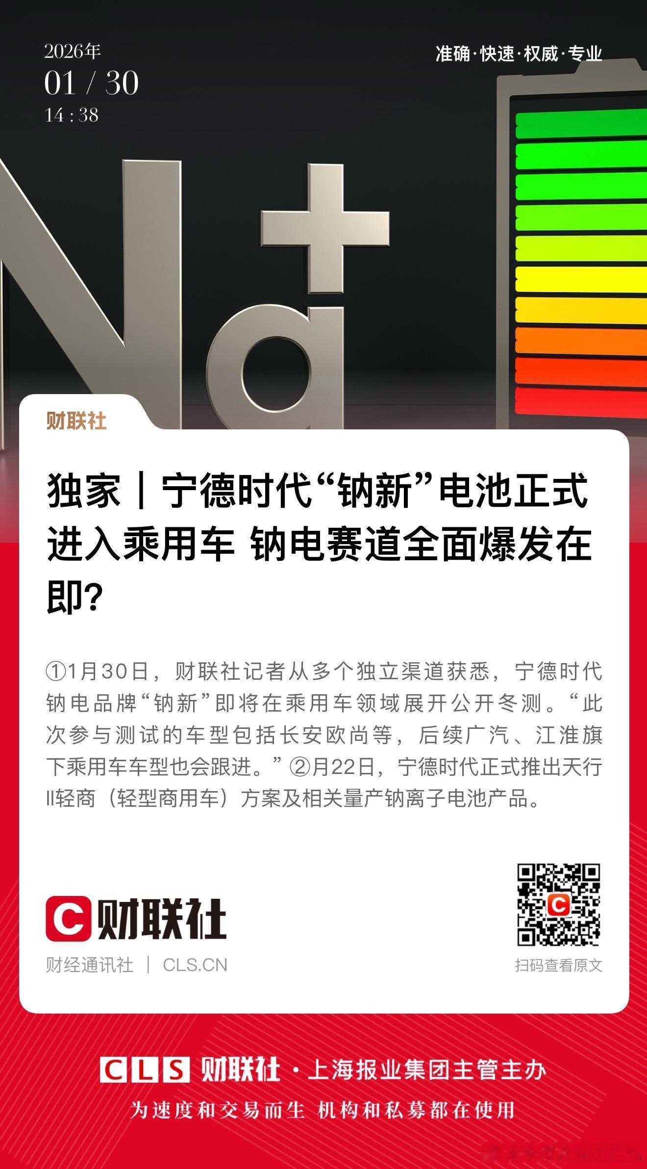 宁德时代钠电池正式进入乘用车 优势还是有的!低温性能强、安全性高、成本潜力大,适配入门纯电、混动及换电车型,降低锂资源依赖。 估计还是配在一些入门型的车型,比较适合在北方寒冷的地方使用。