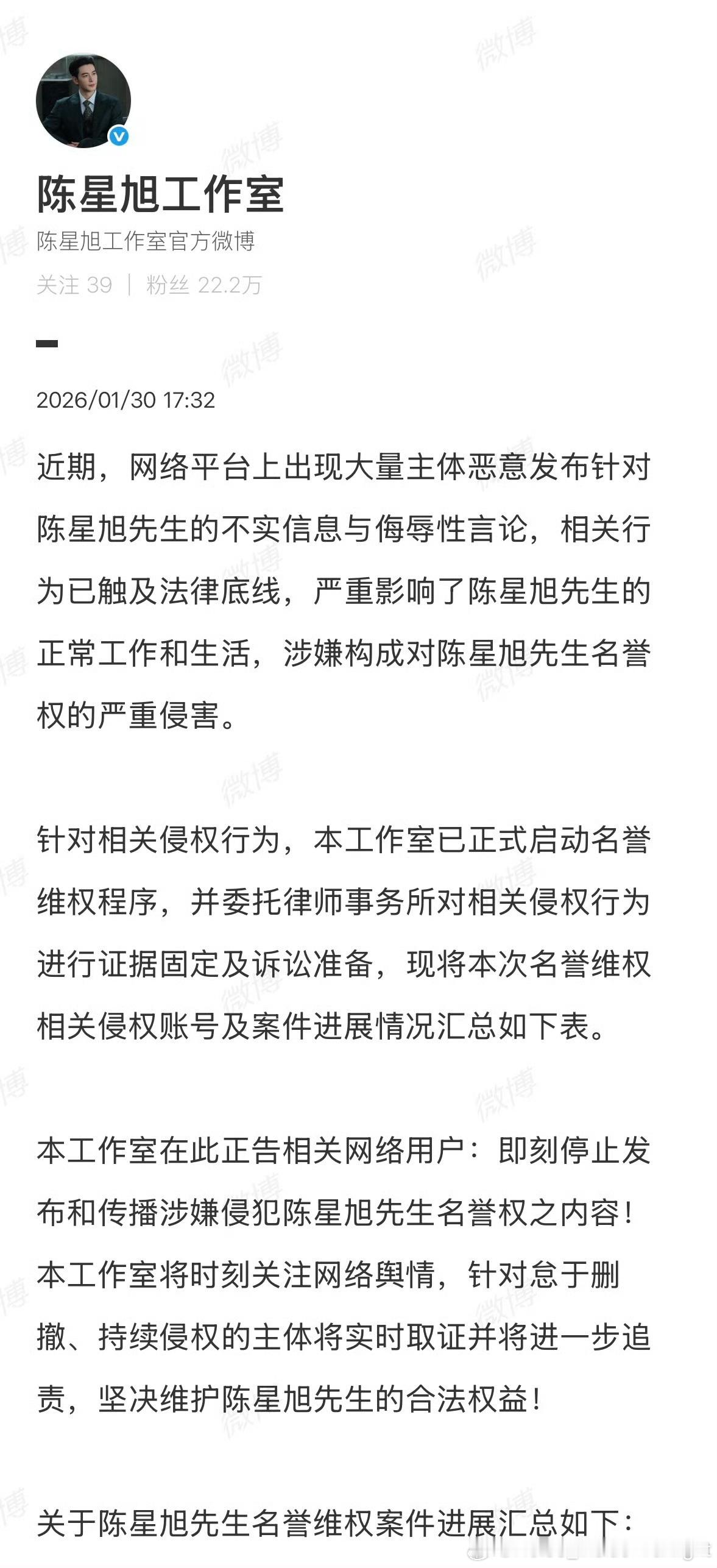 陈星旭工作室告黑了,已提交立案材料的5个,完成证据固定的28个,微博、豆瓣、痘印各个平台都有