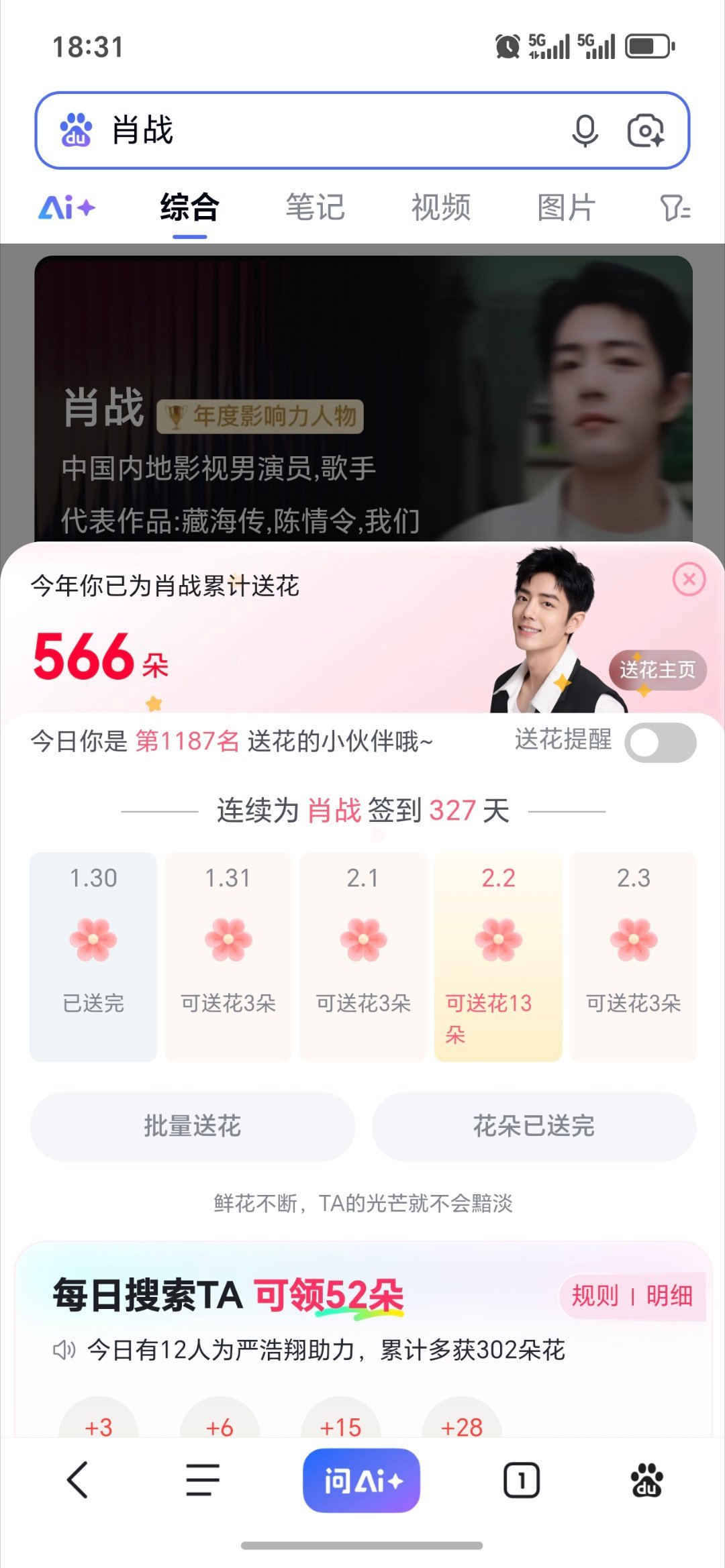 百度送花去一下肖战