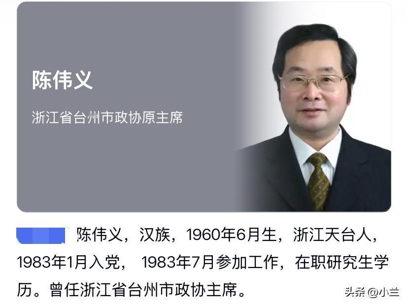 浙江省台州市66岁的陈伟义上了热搜!他是浙江天台人,有着研究生学历,23岁开始了工作。 曾当过代课教师,早年在台州师范专科学校、临海师范学校工作过,后来转入行政工作,曾在仙居县、玉环县、温岭市工作多年。 他今年已经66岁了,也淡出大家的视线有几年了,本该是颐养天年的时候,可该来的还是来了,现在是晚节不保啊!