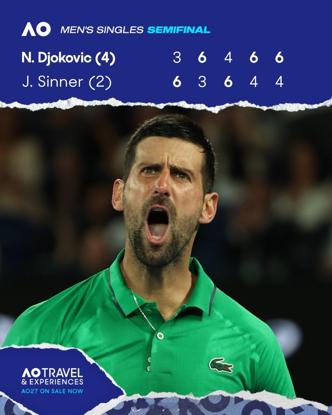 德约科维奇vs辛纳 38岁德约闯进澳网男单决赛,将与阿尔卡拉斯争冠!