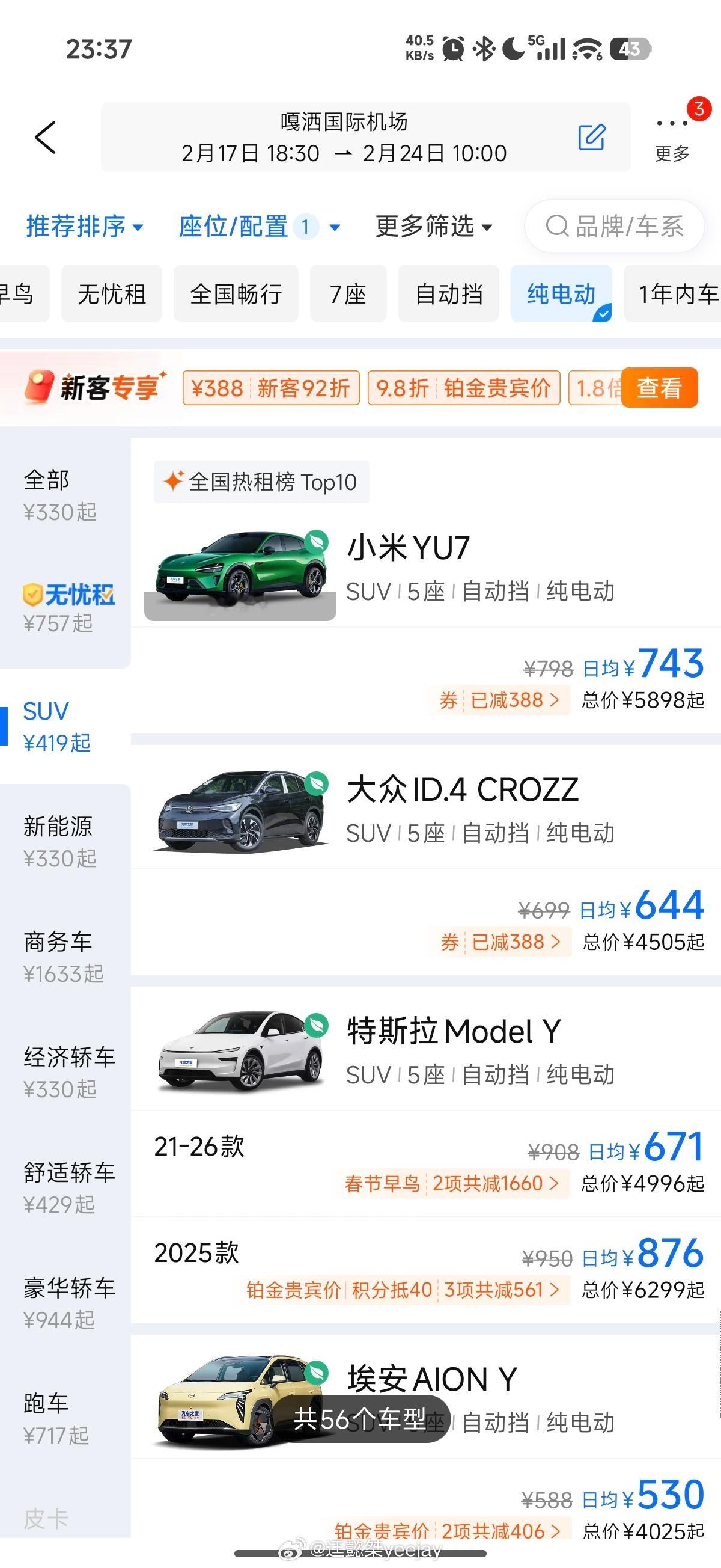 当然还有小鹏自营充电站S4,价格有点高了(图6)。汽场全开租车