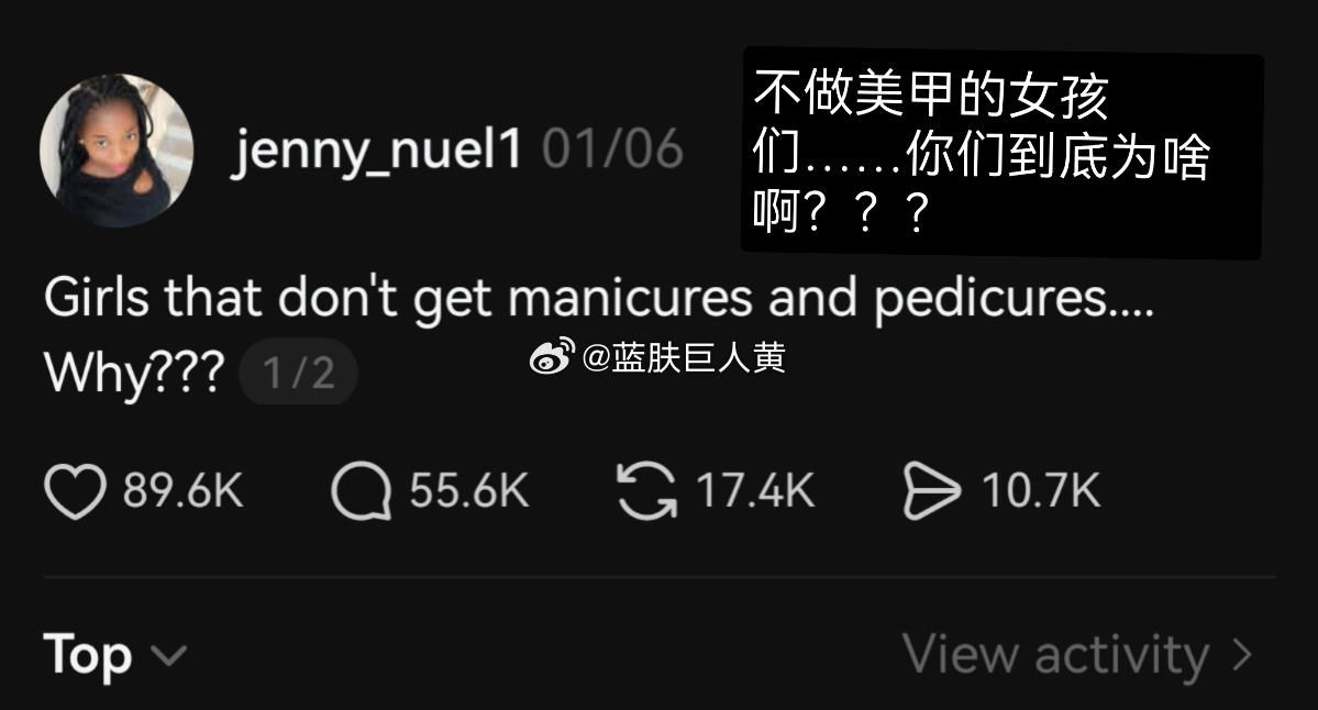 外网大热贴:一个叫珍妮的女孩在网上问“为什么会有女性不做美甲?”很快她收到了各种