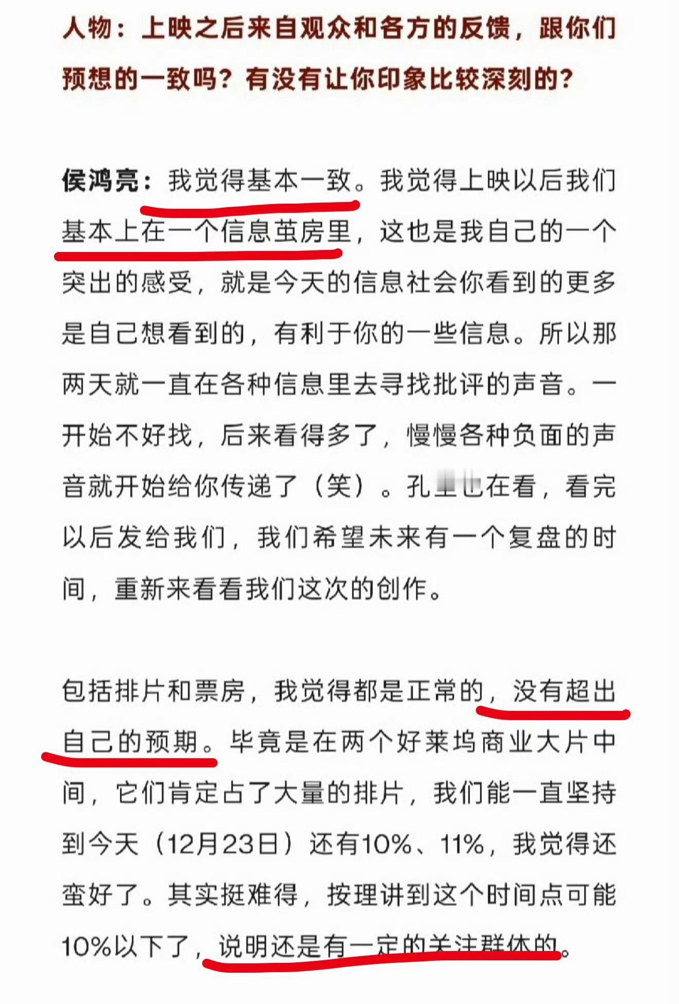 侯鸿亮的信息茧房俺不中了,侯鸿亮因为说了得闲票房没超预期,有太多遗憾,自己在信息茧房里,导致所有正午剧都被记恨上了,目前生命树在播,也没逃掉