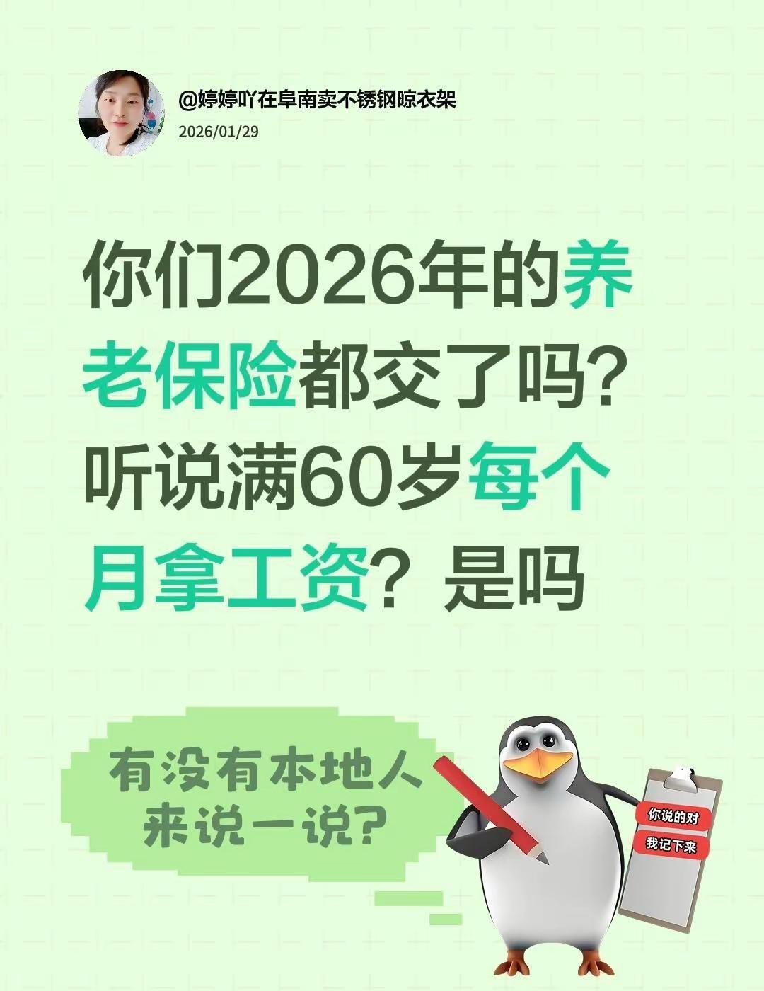 你们2026年的养老保险都交了吗?听说满60岁每个月拿工资?是吗养老险 养老金 养老保险 社保养老金