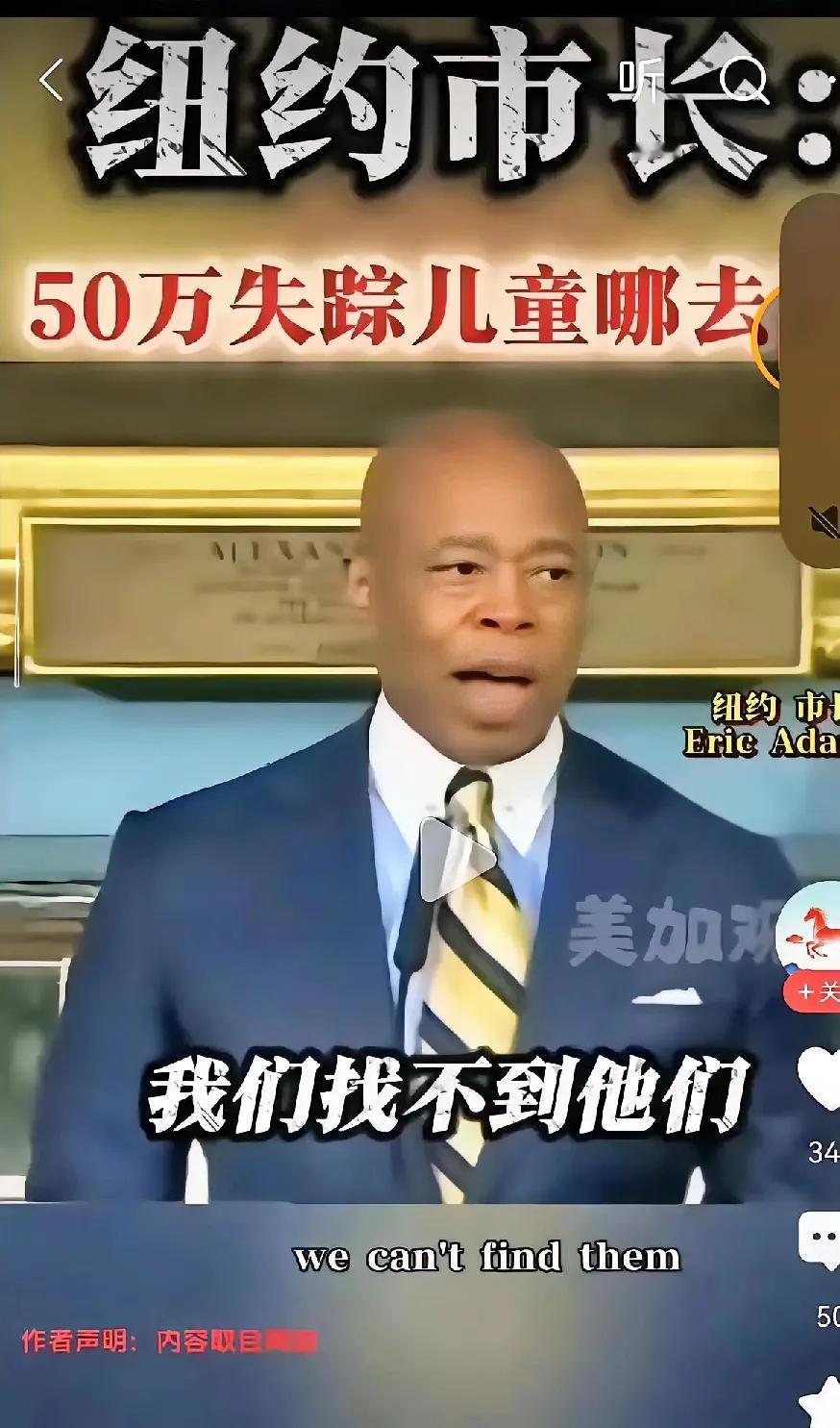 太离谱了 资本主义社会的吃人真相,竟由纽约市长亲自曝光!50万儿童失踪,彻查无果。50万啊,这相当于一个州的人口,实在是太恐怖了!我就是想知道问,那些被美国收养的中国孤儿,如今还有几人在世?