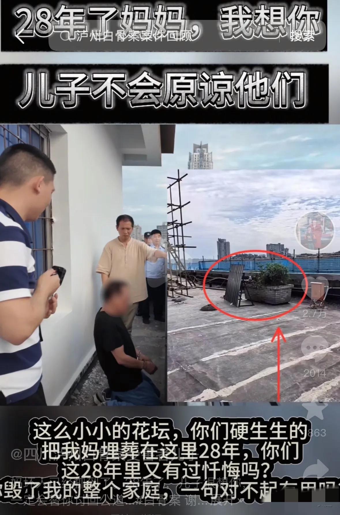 泸州白骨案受害者的遗骨在顶楼被发现后,她的儿子当即明白了那可能就是他自己的母亲!于是,在警方联系他之前,他就主动和他们联系上了并迅速赶往当地。 2025年6月7日清晨,泸州回龙湾公交商城顶楼,几名工人正在做防水翻新工程。在水泥花坛被砸碎的一瞬间,泥土中竟然惊现一具蜷缩的遗骨。工人们惊魂未定,只能慌忙报警求助。 一时间,顶楼发现尸骨这个消息火速扩散。 彼时,公交商城仍有不少老商户,其中的一个恰好就是受害者吴艳萍的亲属。那时候,吴艳萍已失踪整整28年,结合那具突然被发现的遗骨,一个不好的感觉油然而生。 于是,这位亲属找出了吴艳萍当年的两张老照片,并且提供给了警方。另外一方面,他还将这个消息告知了吴艳萍的儿子——黄平。 可怜的黄平,已苦苦等待母亲近30年,可却一直没有半分回音。当亲属给他提供那样一个信息时,他便有了一定心理准备,觉得楼顶遗骨大概率就是他的母亲。于是,他当即打电话告知了父亲,并联系上了当地警方。 警方采集黄平与亲属的DNA样本,与遗骨进行比对,最终确认死者就是失踪28年的吴艳萍。现场花坛长约1.5米、宽1米,骸骨蜷缩其中,上方覆盖的泥土重达数百斤,被分装成十多个编织袋。 警方通过走访当年商户与员工,锁定关键线索,确认吴艳萍1997年2月1日被同行陈某芬等人诱骗杀害,因4万元债务纠纷遭掐死藏尸,随身金银首饰被抢走。两名嫌疑人漂白身份逃亡28年,最终被警方抓获归案。 黄平赶到现场后,看到狭小花坛内的遗骸,多年寻母的期盼彻底落空。母亲的失踪改写了他的人生轨迹,成长过程始终被阴影笼罩,他曾无数次在商城周边寻找,却始终没有线索。 28年悬案告破,正义虽迟但到。黄平一家终于为吴艳萍讨回公道,遗骸得以妥善安葬。这起案件也提醒人们,债务纠纷需通过合法途径解决,暴力与藏匿无法逃脱法律制裁,时间终会让真相浮出水面。