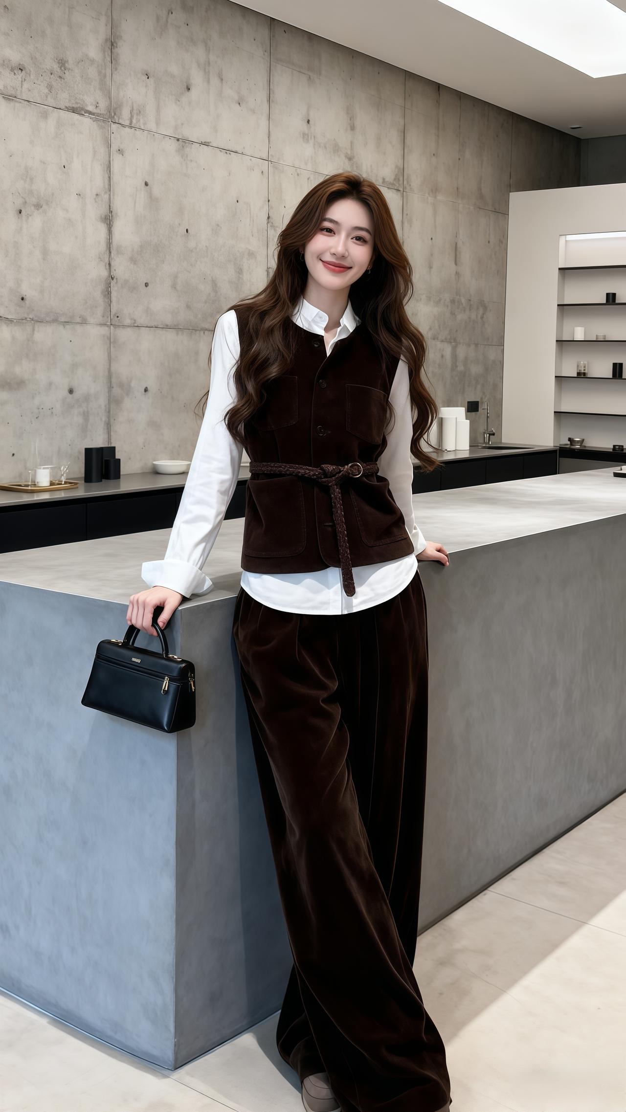 这套穿搭是温柔利落的黑蓝秋日风,把松弛质感与精致细节融合。黑色开衫自带温柔松弛感