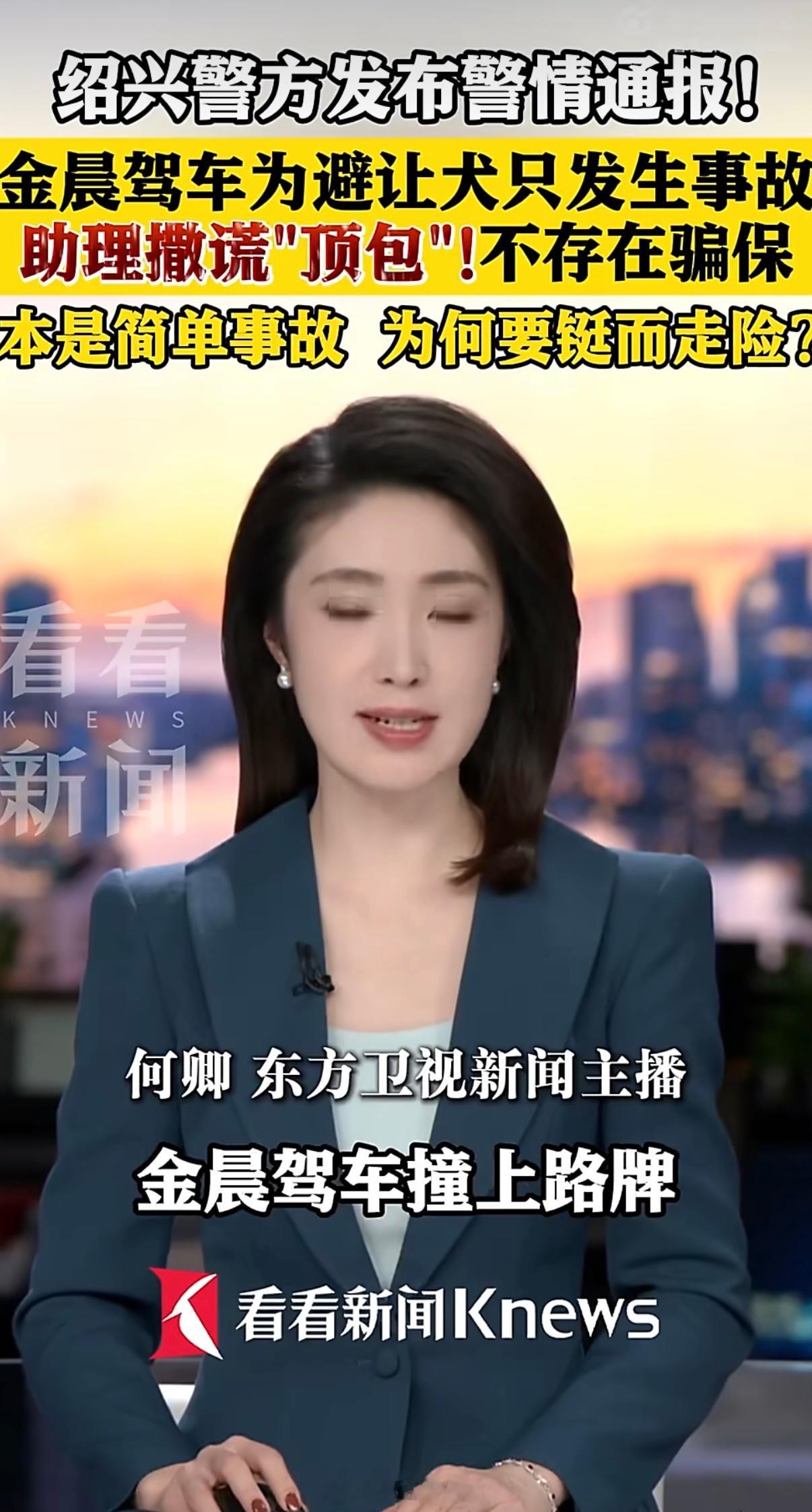 绍兴警方通报,女星金晨去年3月在绍兴出车祸的事说清楚了。