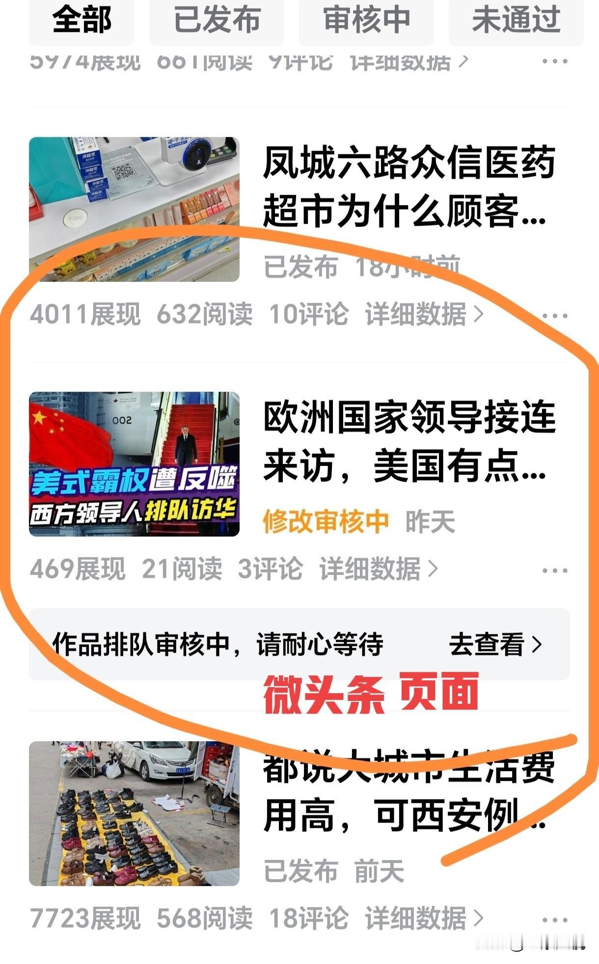 我发现头条作品的审核推荐另有门道! 昨天早上我发了一篇国际时事的微头条,到中午推荐和阅读很低,就试着复制粘贴后发到文章窗口里,文章窗口很快也通过了审核,但不能转发分享。今天早上我发现文章的推荐量过千了,但阅读量才个位数。我就在客服中心咨询了一下,结果智能客服说需要人工客服处理,我联系了人工客服,回答是有不宜发表的内容。我立即把微头条和文章的题目分别修改了几个字,哎,文章审核很快通过了,而且平台还自动生成了AI文章发表了,可微头条这边显示一直在审核中。 这种情况的出现,是不是很奇葩?同一个平台,文章与微头条的审核是分开的,而且明显标准还不一致,要不怎么会一边通过了一边不通过?大家发现这种情况没有?