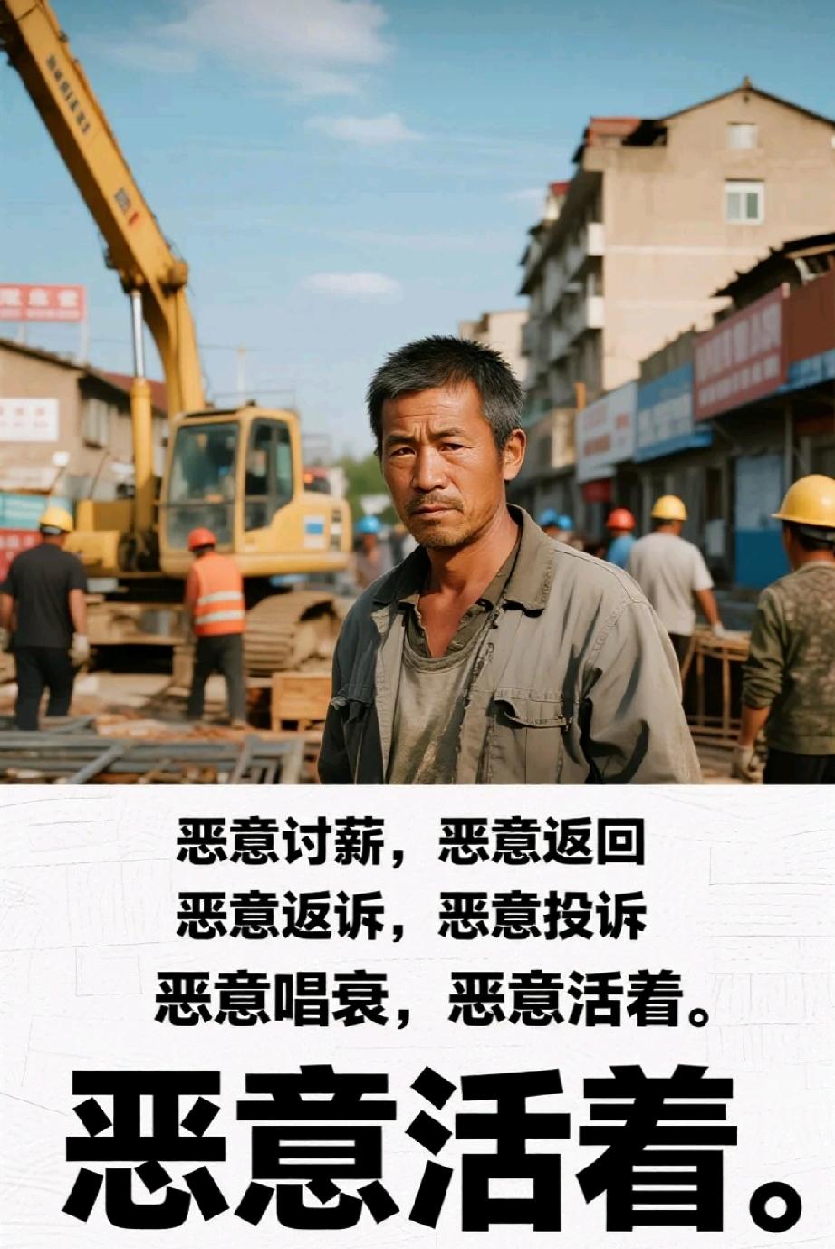 马上要过年了,工地上邪门的很! 除了钱不到位,啥都到位! 什么都能安排明白,就工钱安排不明白! 人脸识别一卡一档,比高考入考还严! 早会喊口号,晚会加个班! 合同更是玩出了新境界,不准因甲方拖欠工程款停工。 白纸黑字,理直气壮。欠钱的人,成了规矩制定的者。 工资更是得看缘分,三个月是起步,半年算常规操作,一年也不算新闻。 你在工地上流汗,他们在表格上画勾。 你在等钱救命,他们在会上强调文明施工。 钢筋混凝土垒得起高楼,却垒不起一句月底到账的承诺!如今欠薪成了行为艺术,成了成语,“恶意讨薪”。工地欠钱 工地规定 工地大环境 工地过年 图片为AI生成
