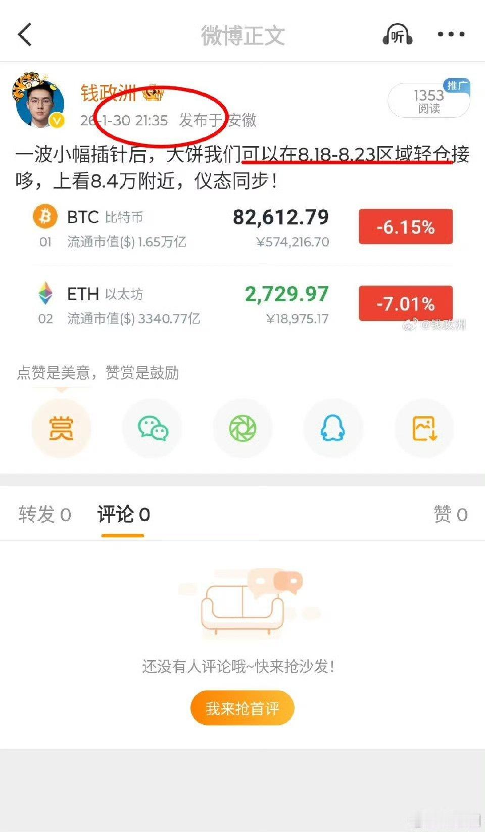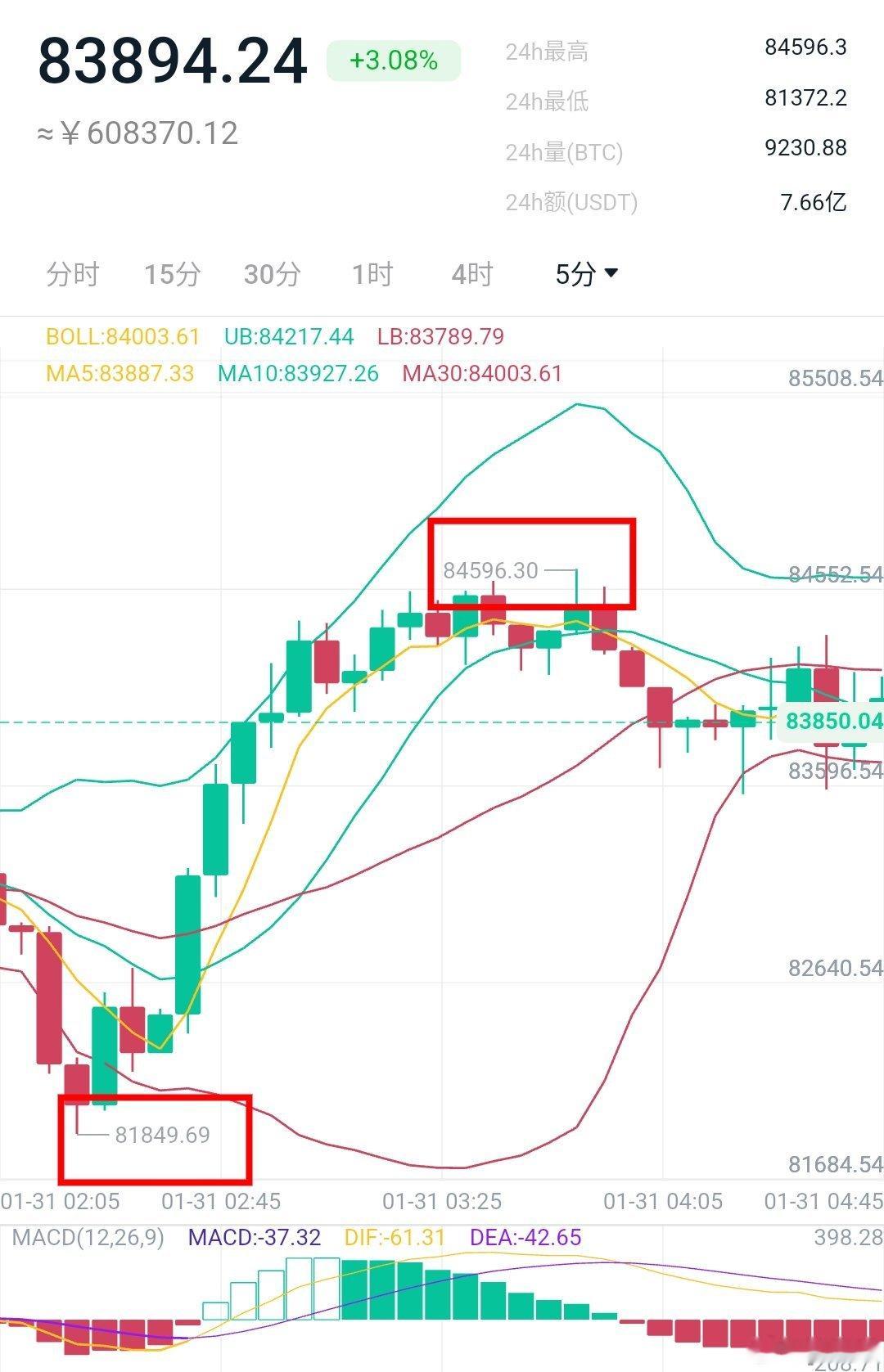 1、周五很多人都看好下破8万,毕竟这个箜头趋势太明显了,但是洲哥依然坚持自己的思路并去执行,说好的下方8万是支撑,不可能一次直接下破,二次探底依然坚挺。
