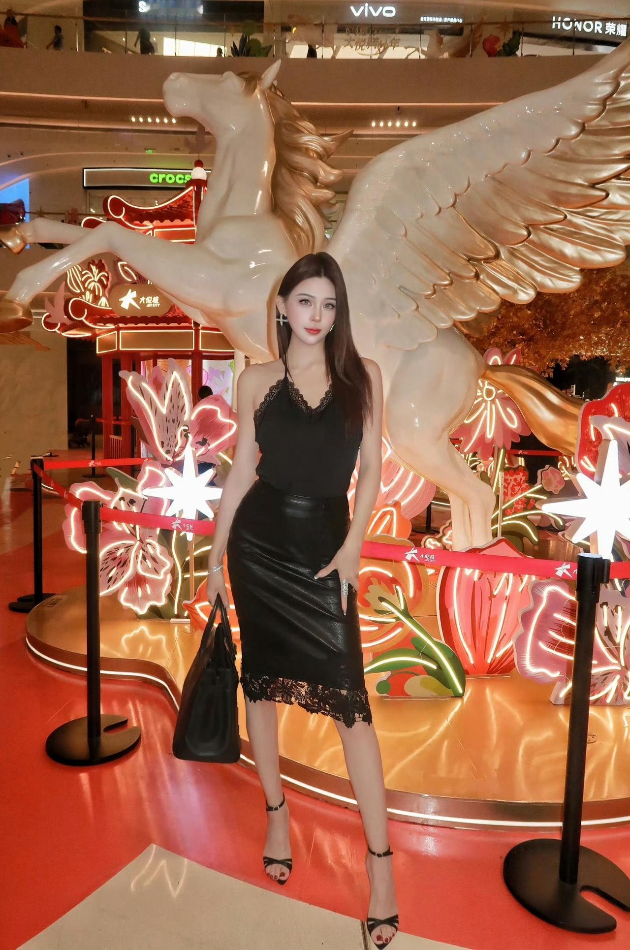 酒红色皮衣搭配红色蕾丝袜|高级感夜拍