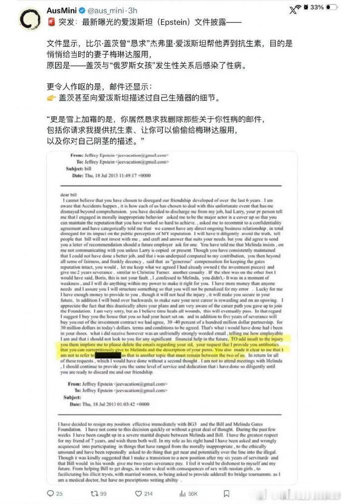 比尔盖茨玩的这么花啊爱泼斯坦文件称比尔盖茨染上性病