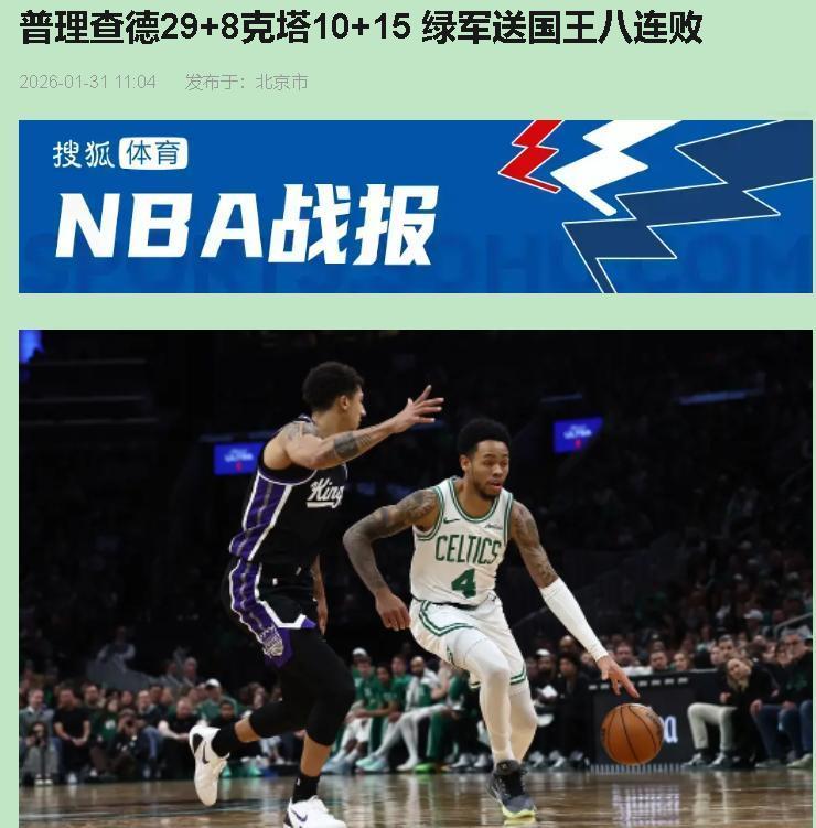 都说绿军缺了核心得完蛋,结果人家用替补阵容把国王打成了筛子!赢球不可怕,缺谁谁尴尬——这比赛看完就一个感觉:绿军的班底,厚得离谱。 看看这反差:普理查德狂砍29分,可最吓人的是怀特才拿7分!就这,绿军还能赢20分。为啥?人家打球的人太多了。布朗、威少都不在,照样第一节就轰出40-25。国王呢?从头到尾没睡醒,防守像纸糊的,追到16分算给面子了。这不叫比赛,这叫“深度碾压”。 国王这八连败,真不冤。拉文17分算撑撑场面,德罗赞10投2中只拿6分,核心打成这样,球队心态早崩了。最拼的居然是个二年级生马克西姆-雷诺,抢了14个板——听起来励志,细想更可悲,其他人干啥去了?战术跑得稀碎,拿球就单干,这状态别说赢球,连输都输得难看。 绿军亮点在哪?普理查德三分开得早,直接打懵对面;克塔稳抓15个板,护筐硬气;怀特虽然自己不得分,9个助攻盘活全队。更关键是替补席上西蒙斯和沙伊尔曼合砍32分,火力没断过。人家打的是体系篮球,每个人都知道该干嘛。反观国王,全队写脸上就俩字:迷茫。 说实话,这种比赛看得挺没劲。绿军像打训练赛,国王像走过场。但往深了想,篮球终究是团队运动,赢球不靠一两个巨星,而是每个人都能站出来——这对咱们普通人也是个提醒吧。国王要想翻身,光靠球星抡不行,得从心气儿和防守重新做起。至于绿军?虐菜局看不出深浅,真正的硬仗还在后头呢。普理查德29+8克塔10+15 绿军送国王八连败