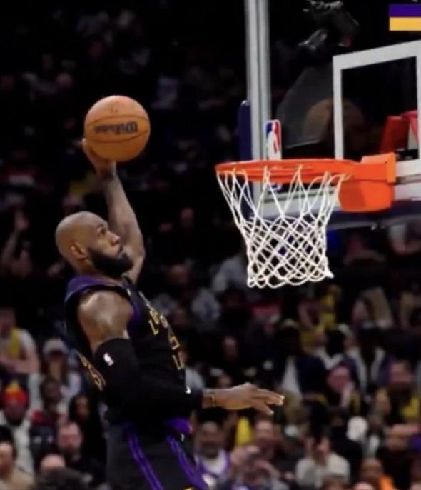 詹姆斯这个左手空接,高度真可以! 艾顿传的球,确实是有点过高了,詹姆斯接球已经是全力起跳,也几乎完成了平框,这大概是他41岁以来跳的最高的一次。 詹姆斯现在的身体状况,比赛季初要好了很多,休息时间充足的情况下,他依然可以完成很多精彩的暴扣,唯一限制他的只有体能。 因此里夫斯复出后,湖人至少可以在进攻端解套,让詹姆斯得到充足的弱侧休息的机会,进攻段活少了,詹姆斯的空切扣篮就更多了。