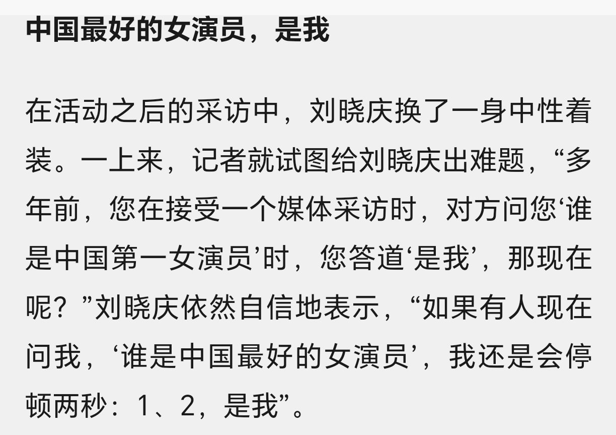 刘晓庆不知道贺峻霖是谁 这算啥,香港记者问刘晓庆是不是崇拜林青霞,刘晓庆表示不崇拜,都没看过林青霞的电影,问她怎么看王家卫,她说觉得王家卫太磨叽,节目里提到邓丽君,她说邓丽君去世时没有巅峰期那么红的。