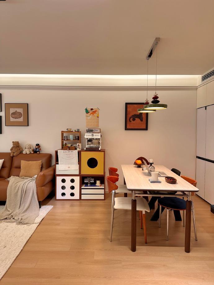 暖色系客餐厅,餐桌选对直接封神|主打🟤🟠⚪️暖色系