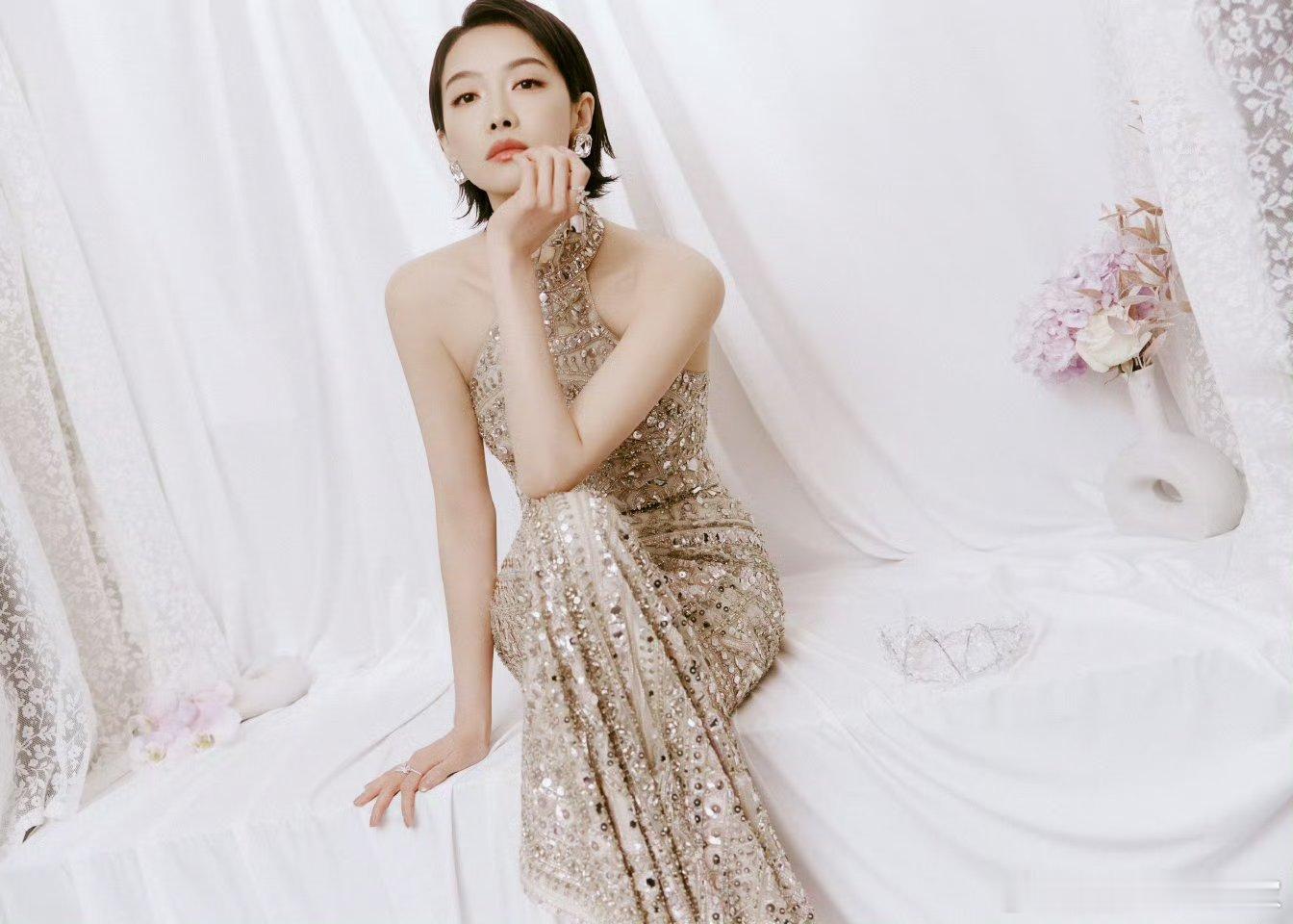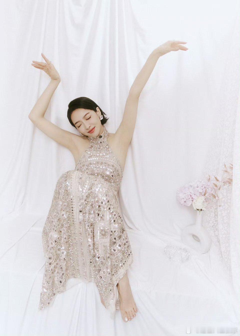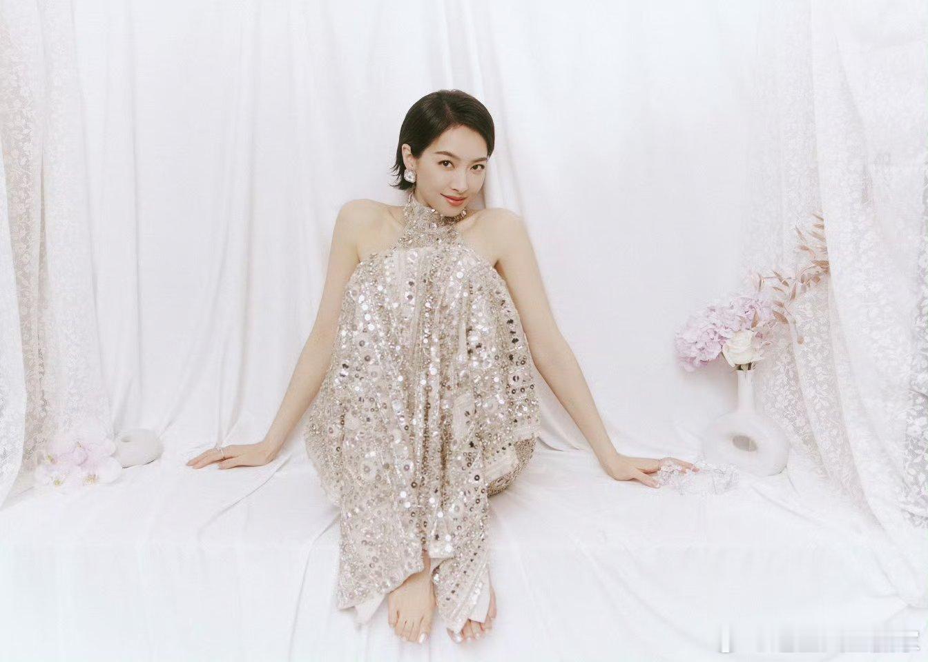 宋茜线下活动出图银色长裙利落短发简直是老公级别的宋茜
