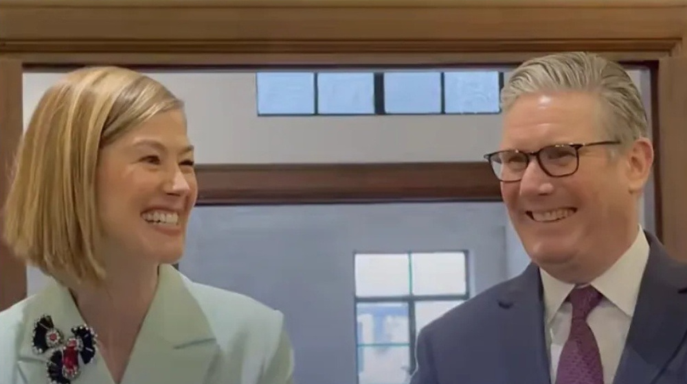 1月31日,当英国首相斯塔默到访上海创新创意设计研究院出席文化交流活动时,人群中响起一阵惊喜的低语和会意的笑声——英国女演员罗莎蒙德・派克(RosamundPike)同框亮相。