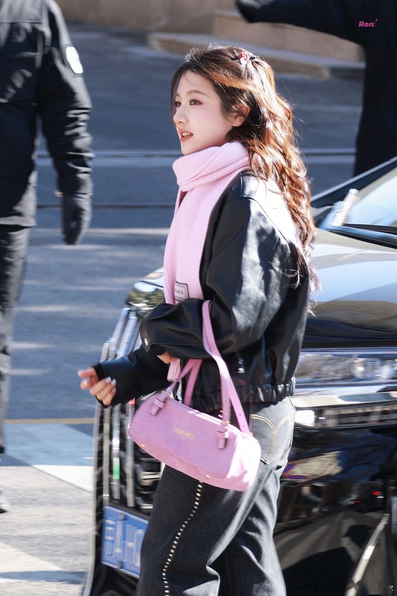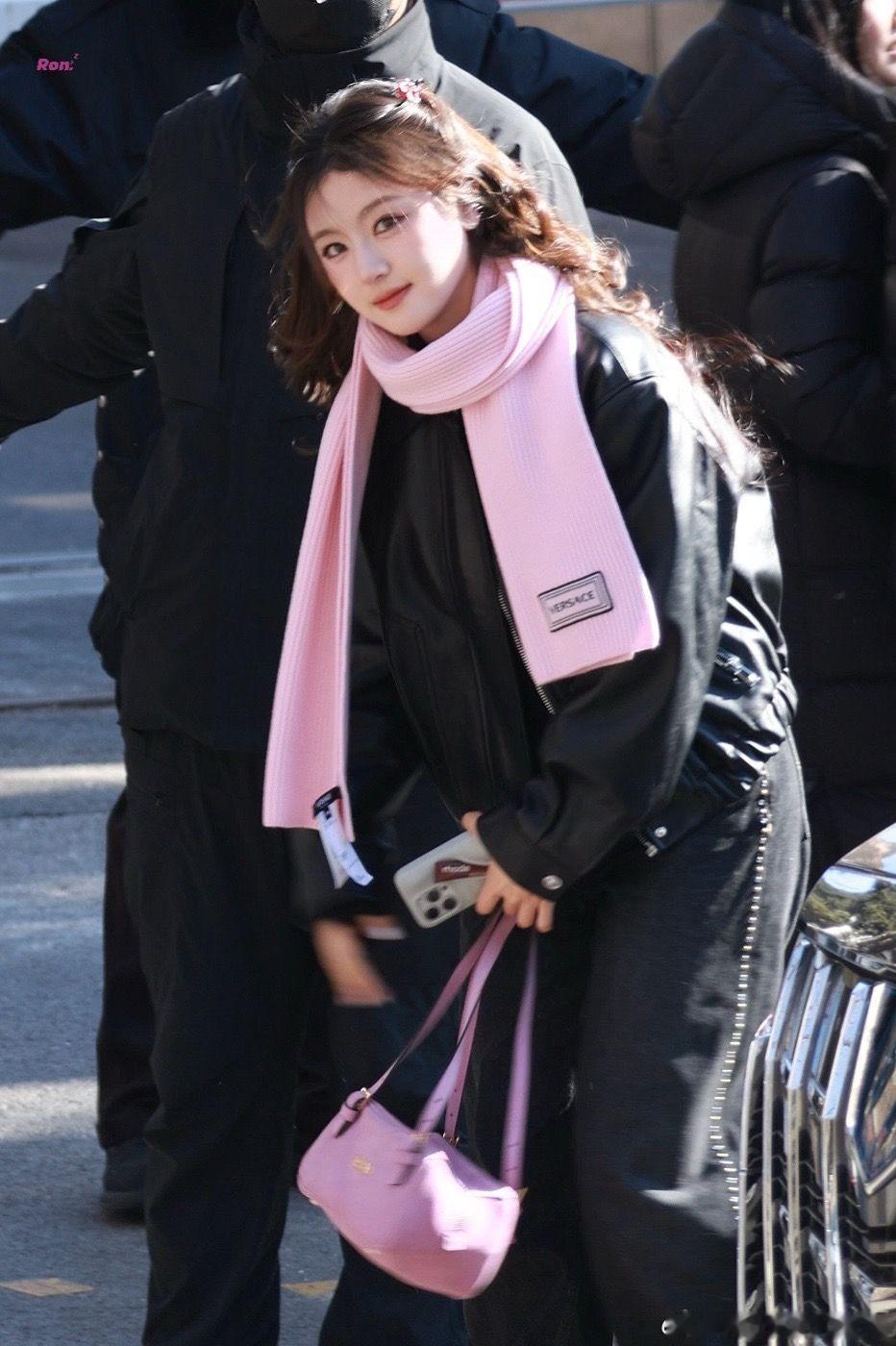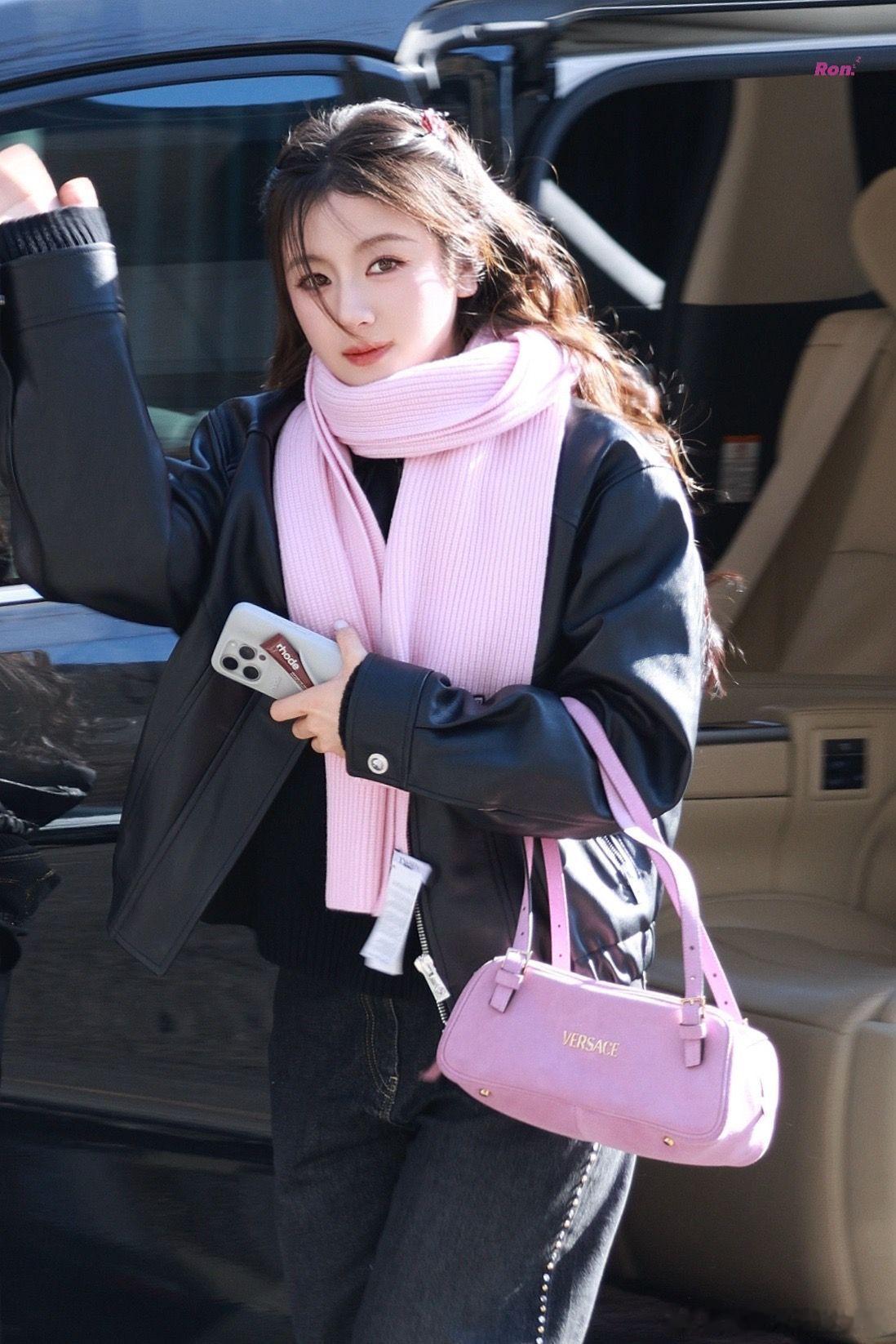 李兰迪 央视春晚联排封神造型!黑皮衣配粉围巾撞出甜酷反差,范思哲皮衣利落,粉围巾柔化冷硬,真人芭比既视感拉满,美翻!