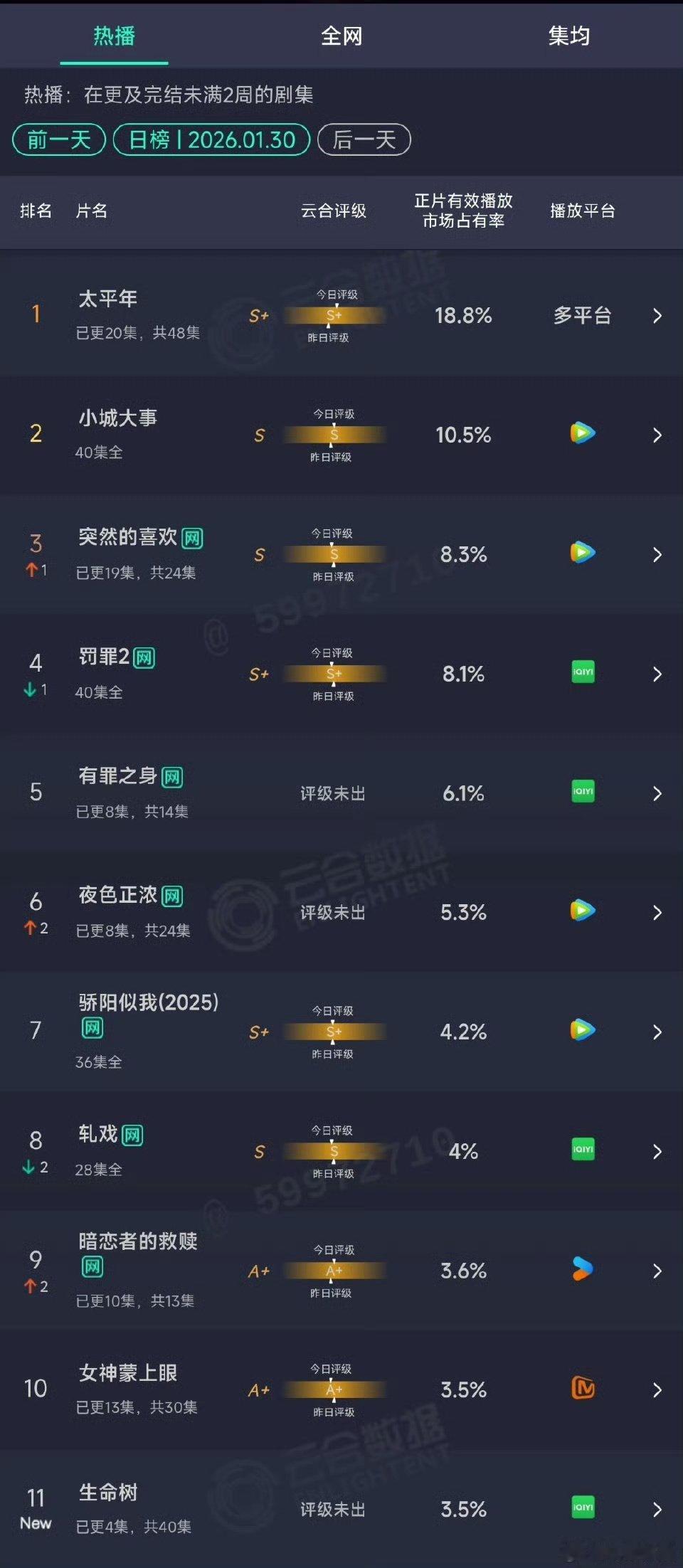 生命树首日3.5%生命树首播云合3.5%生命树首日占比3.5%!