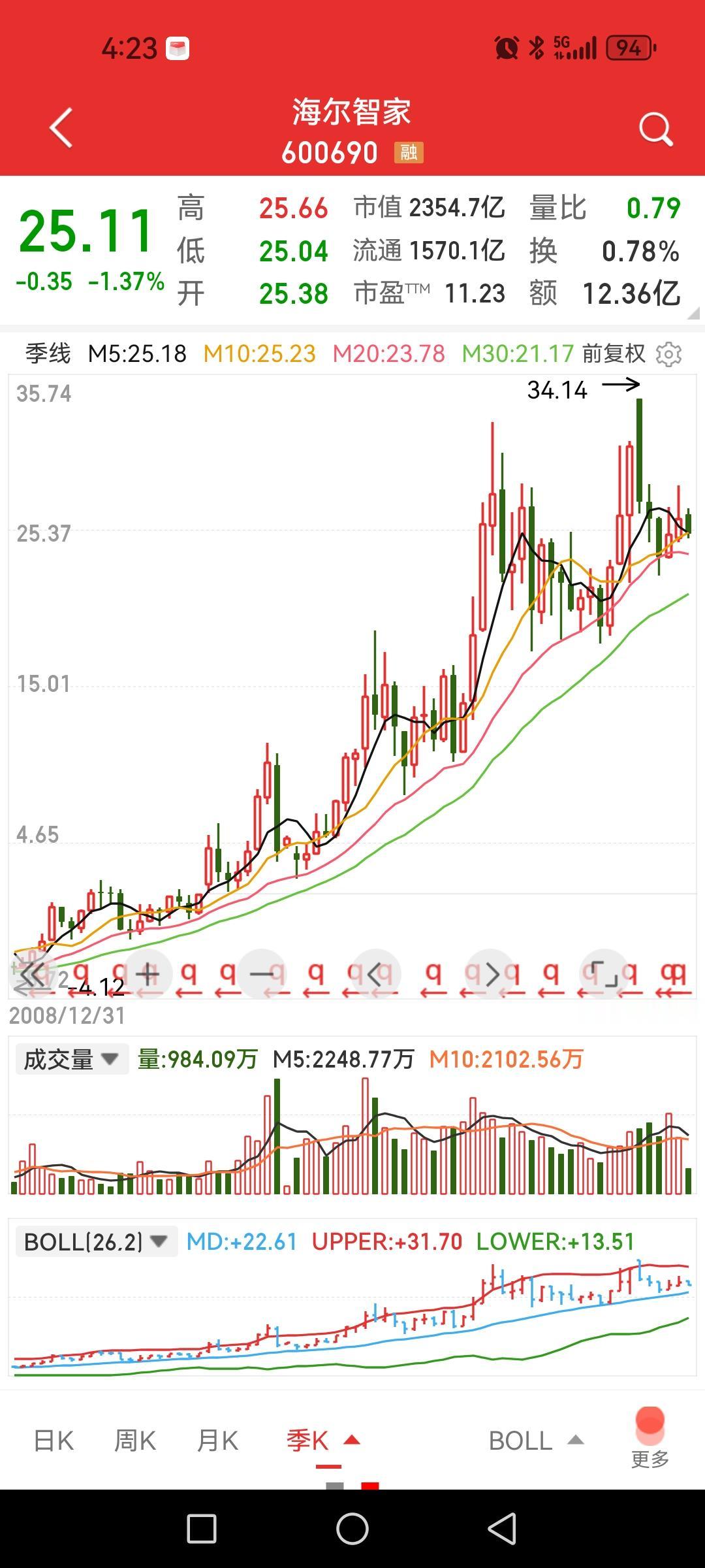 家电企业的增长空间只能寄托于海外市场,能挣钱但都是辛苦钱。 以海尔智家为例,前三季度销售收入近2400亿,作为制造企业是何等规模,要卖大大小小的多少家电产品。销售毛利率27%对于制造企业而言属于传统制造范畴,没有多少技术溢价。净利润率7.3%,对于传统制造企业而言算是不错的了,必然依靠于规模效应。 从市场需求来看,国内就是一个存量市场,人口红利消失,需求来源于人口基数下的常规更新换代。即便以后陆续升级的智能家电也不会产生批量需求暴增的局面。国外则仍是中国品牌家电未来一段时间的潜力市场,正如当初日本家电进入中国市场一样的效果。 至于说到股票,这轮行情与它们无关,也不能以股价走势来褒贬企业发展未来。因为能赚钱并不能导致股票上涨,大A信奉的是由不赚钱到赚钱、赚小钱到赚大钱而非稳定赚钱。