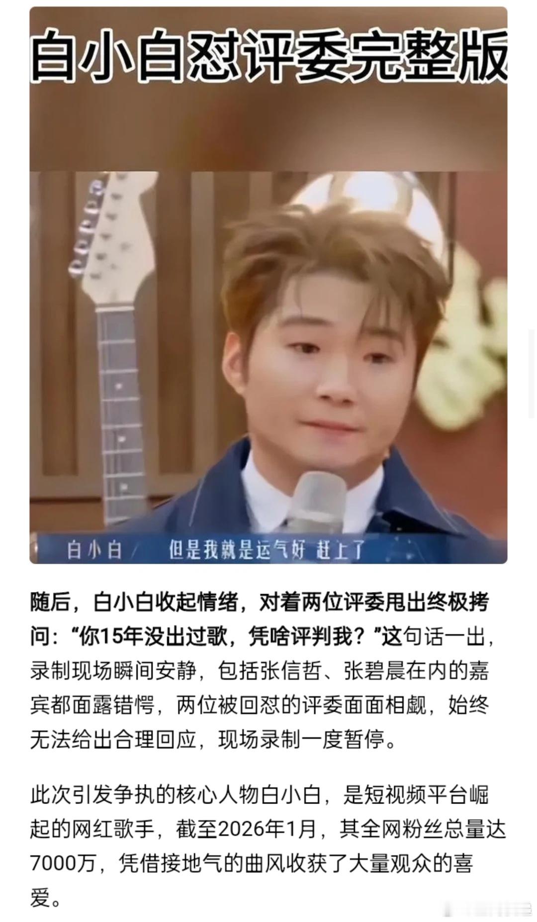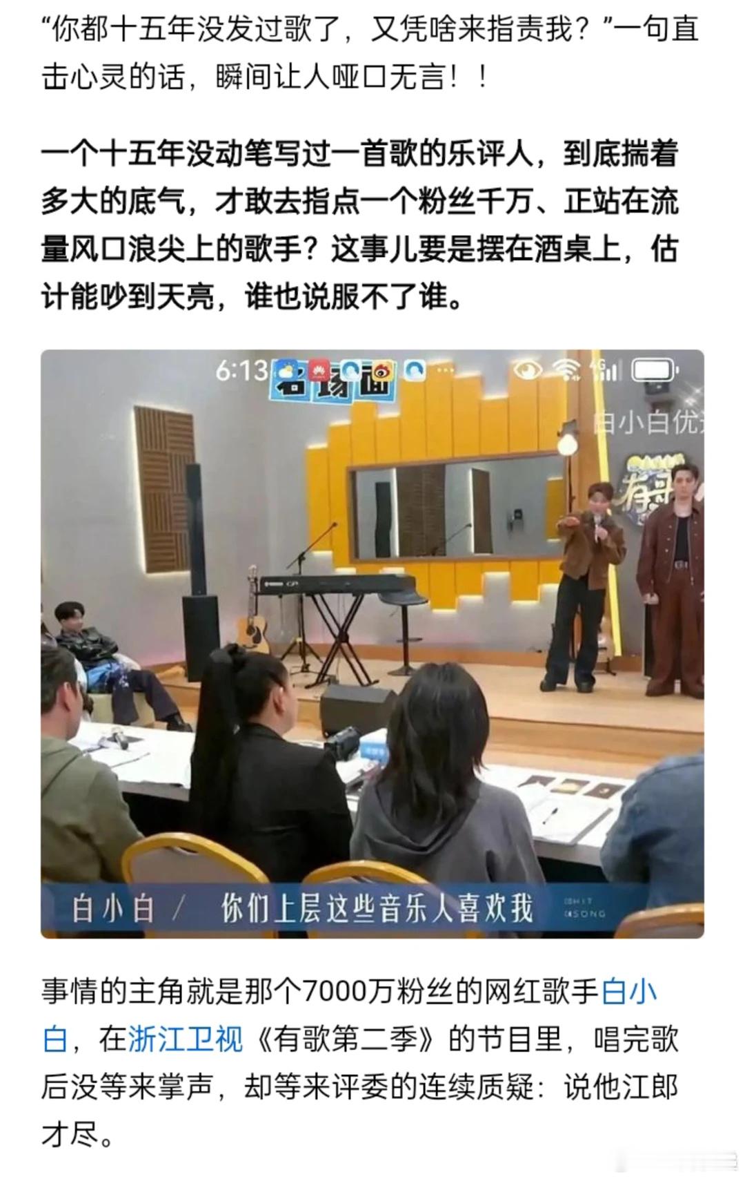 7000万网红怒怼浙江卫视评委:你15年没歌凭啥说我?