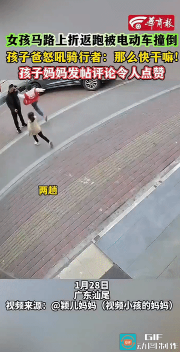 “这妈妈简直是人间清醒!”广东汕尾,孩子父亲一边打电话一边看孩子,女儿在人行道上来回奔跑时被电动车撞倒。父亲见状立刻挂断电话冲上前扶起孩子,并对着骑行者怒吼:“你骑那么快干嘛!”而孩子母亲事后查看监控,了解清楚当时的情况后,一个决定瞬间改变了整个事件的走向,同时也引得无数网友点赞! 来源:【大象新闻】 监控画面显示,孩子的父亲站在马路边上一边打电话一边照看孩子,兄妹俩则开始在人行道与机动车道的交界处来回奔跑! 这种分心看护的状态,为意外埋下了隐患。就在此时,一辆电动车经过,孩子突然毫无征兆地冲向道路中央,电动车骑行者在正常行驶过程中躲避不及,将孩子撞倒在地! 撞击发生后,父亲情绪激动地与骑行者理论,随后骑行者出于歉意,向孩子父亲转账500元作为检查治疗费用! 孩子母亲当时正在家中做饭,并不清楚现场的具体情况。当晚回家回看监控后,她立即发现了问题的关键! 母亲表示:“虽然电动车开得快,但主要责任还是家长没有看护好孩子。” 这位母亲立刻做出决定:要求丈夫将500元医药费原路退还给骑行者,并专门向对方致歉。她坦言:“大家赚钱都不容易,且这次的事情主要还是大人监护不力导致。” 这位母亲不仅退回了赔偿,还将监控视频配上文字发布到社交平台,标题为“如何当好合格监护人”! 她没有指责骑行者,也没有为家人的疏忽辩解,而是坦诚反思。她在文案中明确表示:“这次是爸爸全责,必须正视问题。” 这一做法迅速在网络上引发热议,网友们纷纷为这位母亲的清醒和格局点赞! 令人意想不到的是,事件发生后,孩子妈妈与因监护失职引发意外的孩子父亲产生了分歧,两人甚至电话微信都互相拉黑了! 但这并未影响母亲分享这一教训的初衷。她表示:“发布视频和反思帖的初衷,不仅是为了警醒自己和家人,更是希望能让更多家长重视监护责任。” 这场意外的后续处理,也让更多人关注到日常儿童看护中的安全隐患。监护人应该深刻意识到:马路不是孩子的游乐场,带娃出门,眼睛一刻都不能离开孩子,一时的疏忽可能换来终身的遗憾!