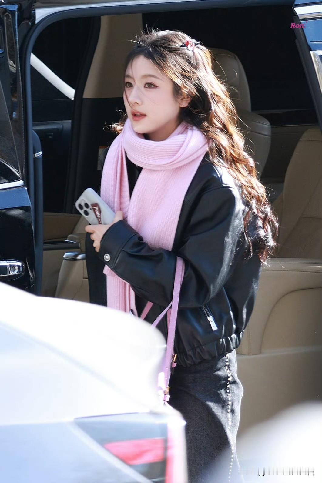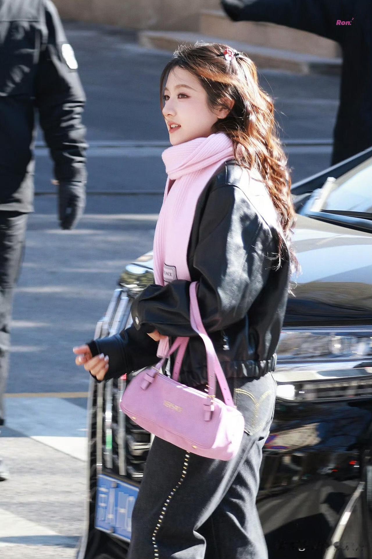 李兰迪,芭比感出圈! 李兰迪在2026年央视春晚第三次联排中以一身黑色皮衣搭配粉色围巾,芭比感太出圈了,这可盐可甜的风格就像个洋娃娃一样! 李兰迪身穿VERSACE黑色美杜莎扣皮衣,搭配同品牌铆钉牛仔裤与运动鞋,搭配粉色羊毛围巾作,硬朗皮革与柔嫩粉色的视觉碰撞被网友盛赞“复刻芭比美学”,这一身又保暖又时尚,美腻了。