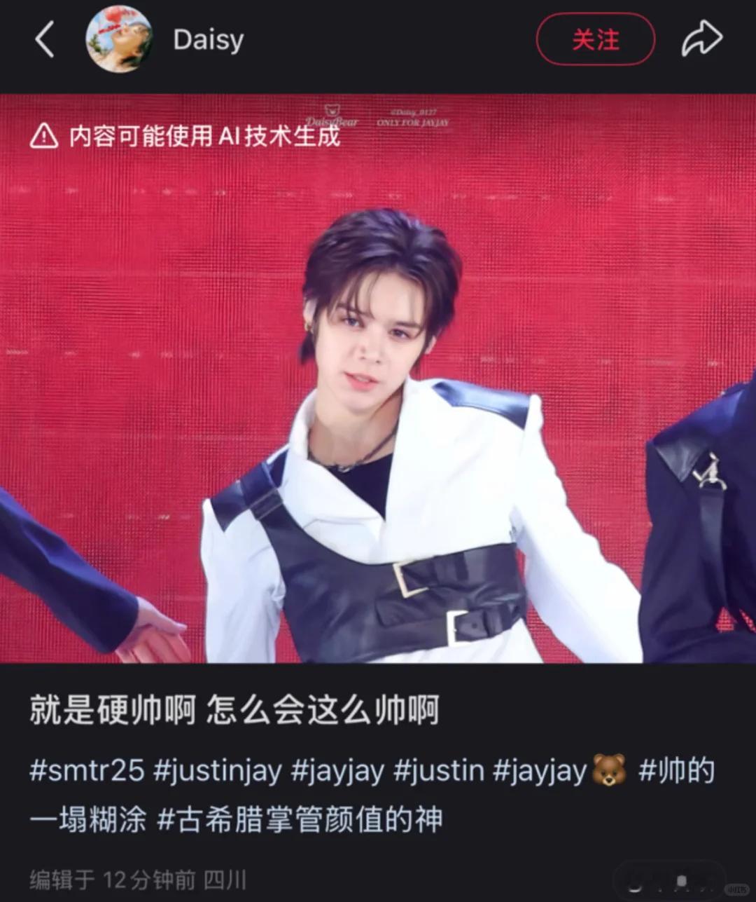 SMTR25练习生JustinJay饭拍被识别为AI技术生成