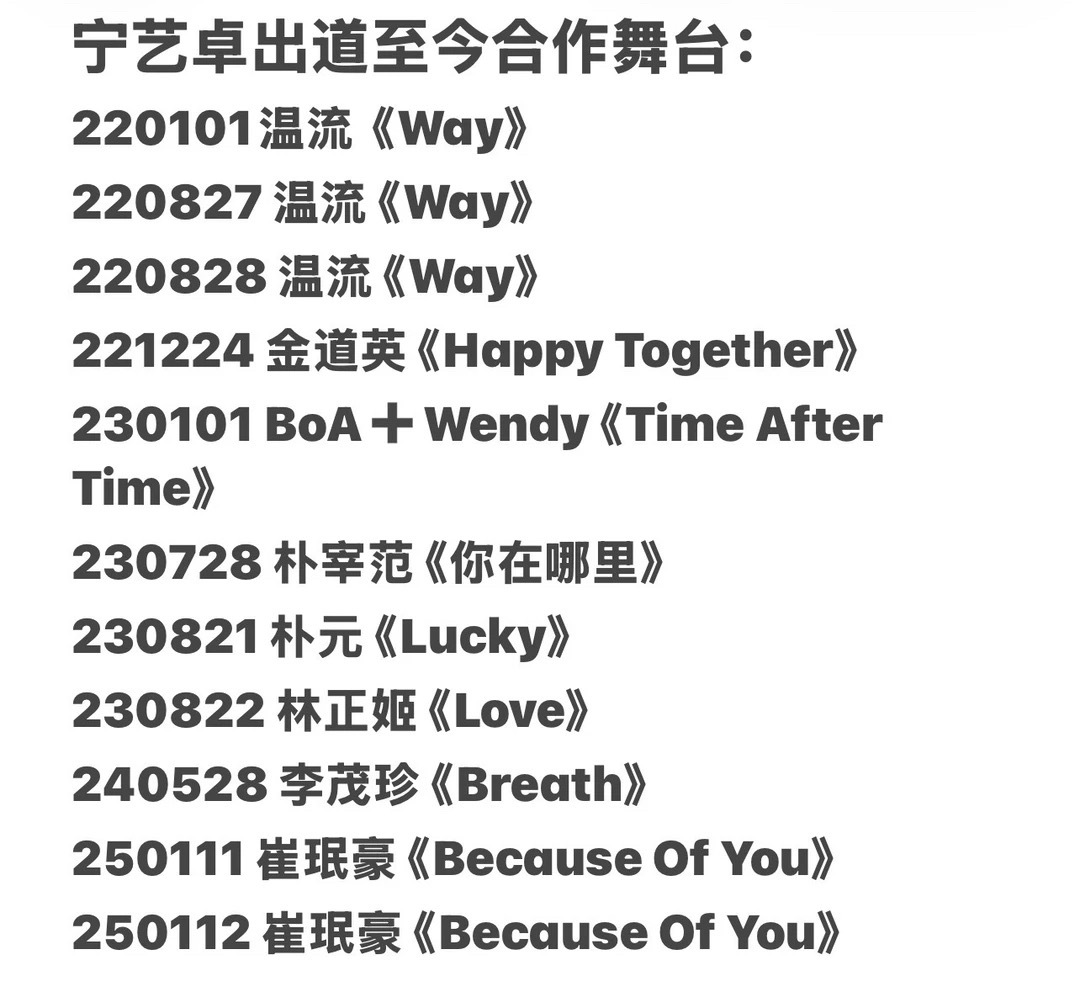 粉丝总结的宁艺卓出道至今的合作舞台