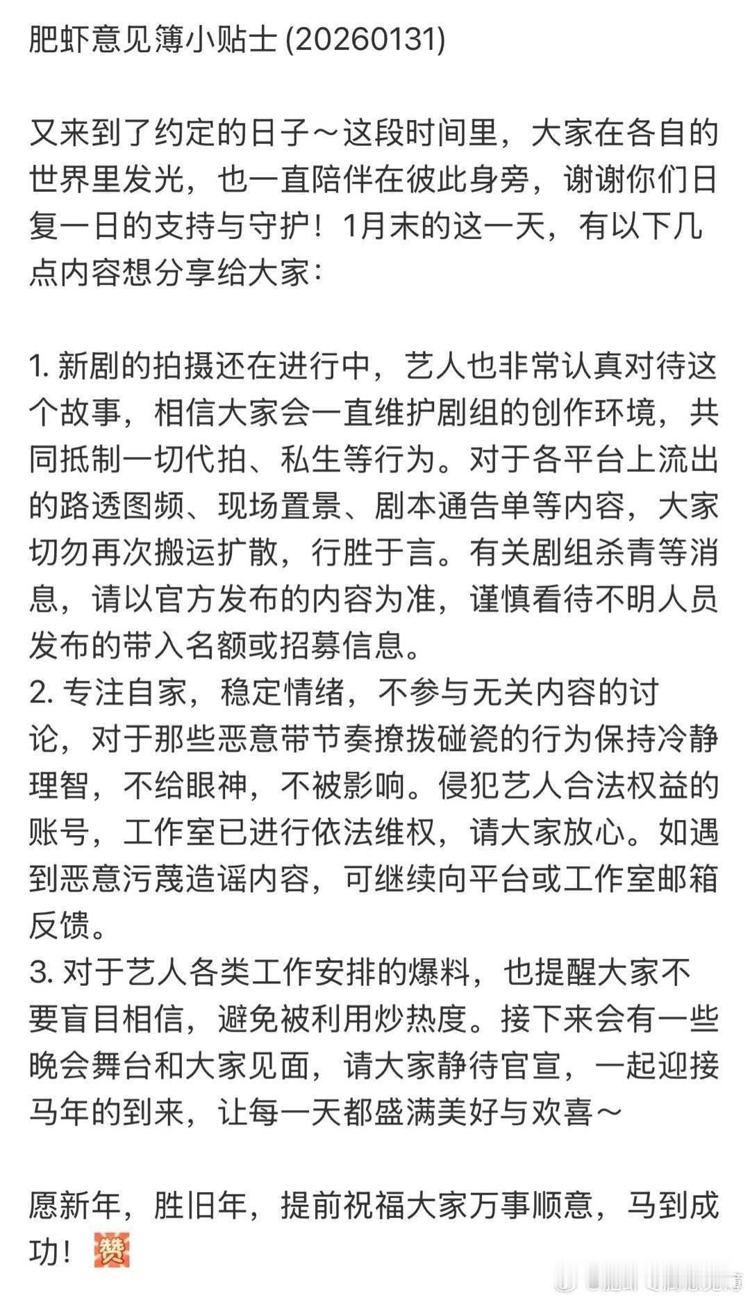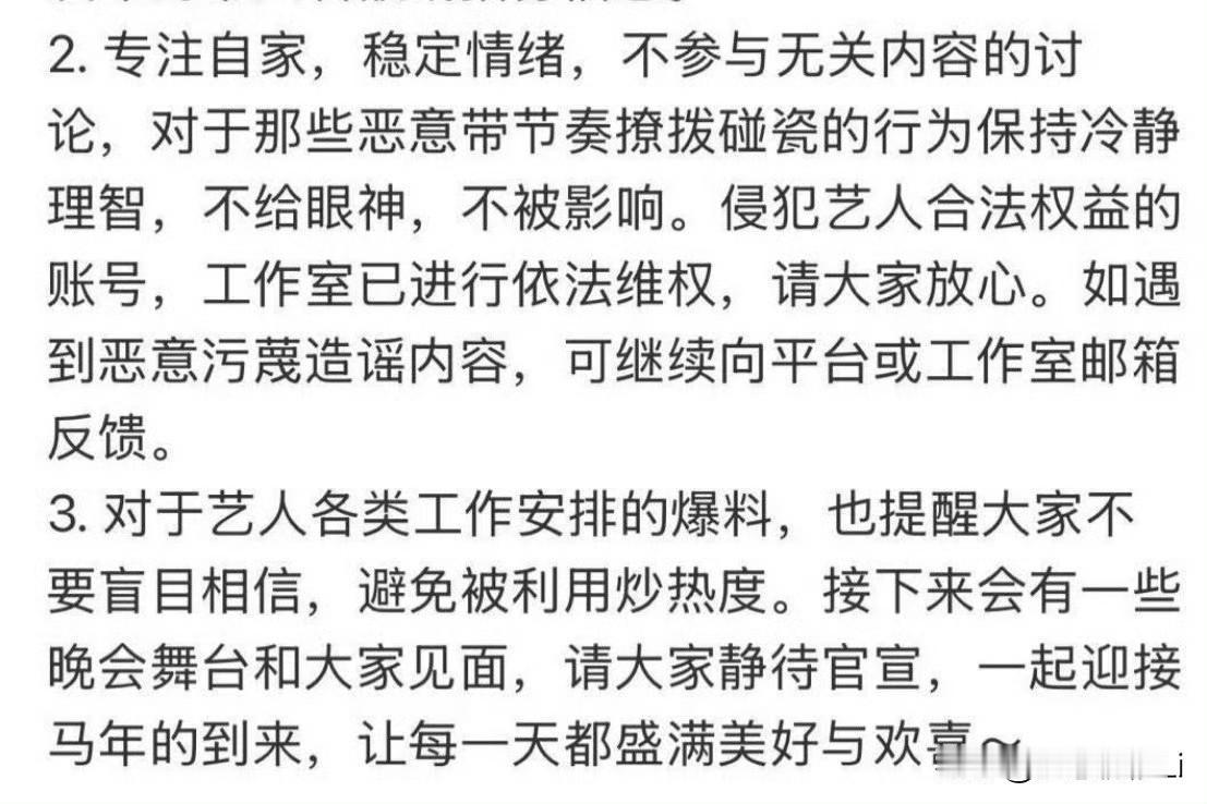 1月家书来了,提醒大家专注自家,对碰瓷的不给眼神,不受影响,专心等待年底的晚会和舞台[星星眼]