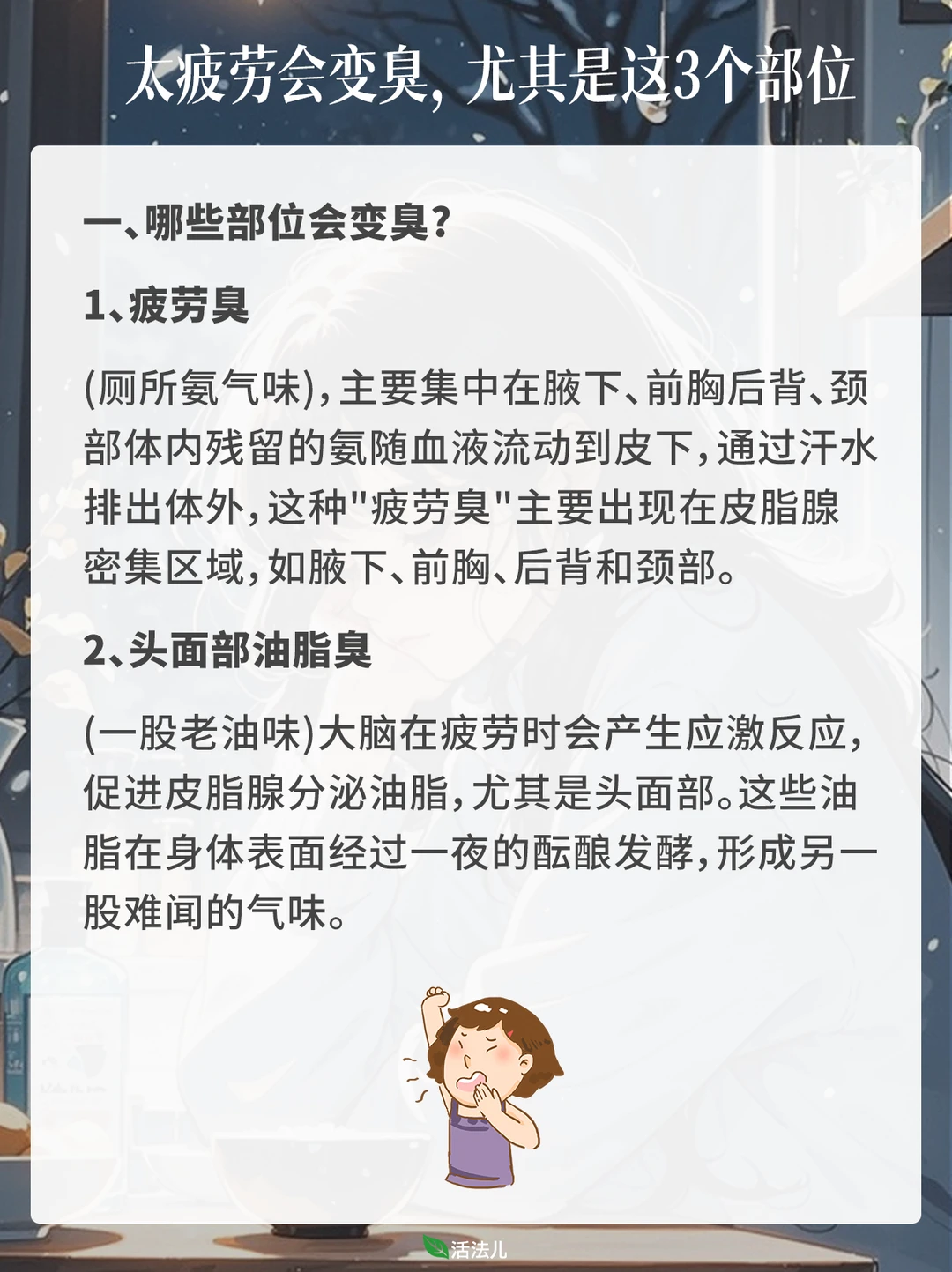 太疲劳会变臭,尤其是这3个部位