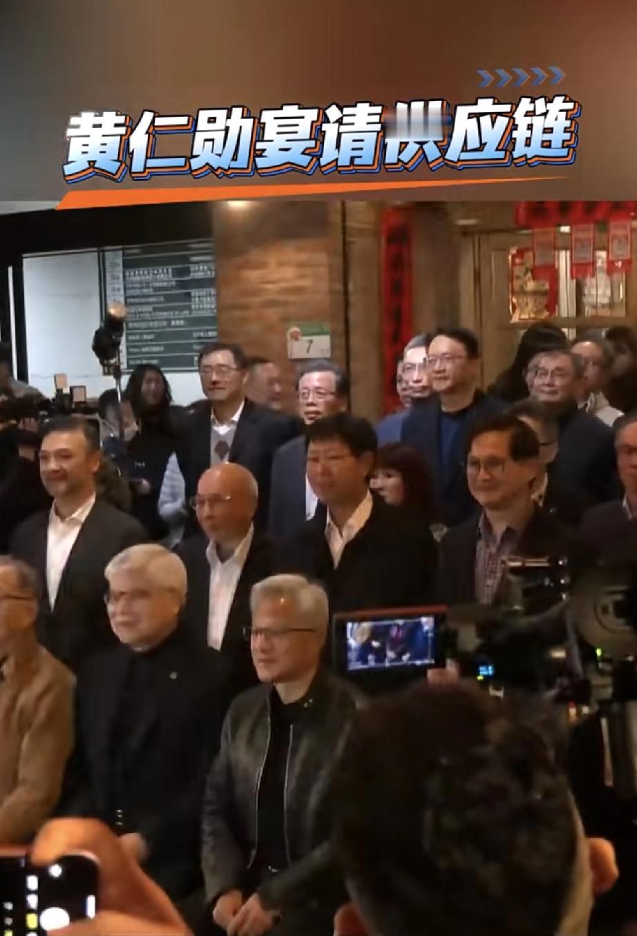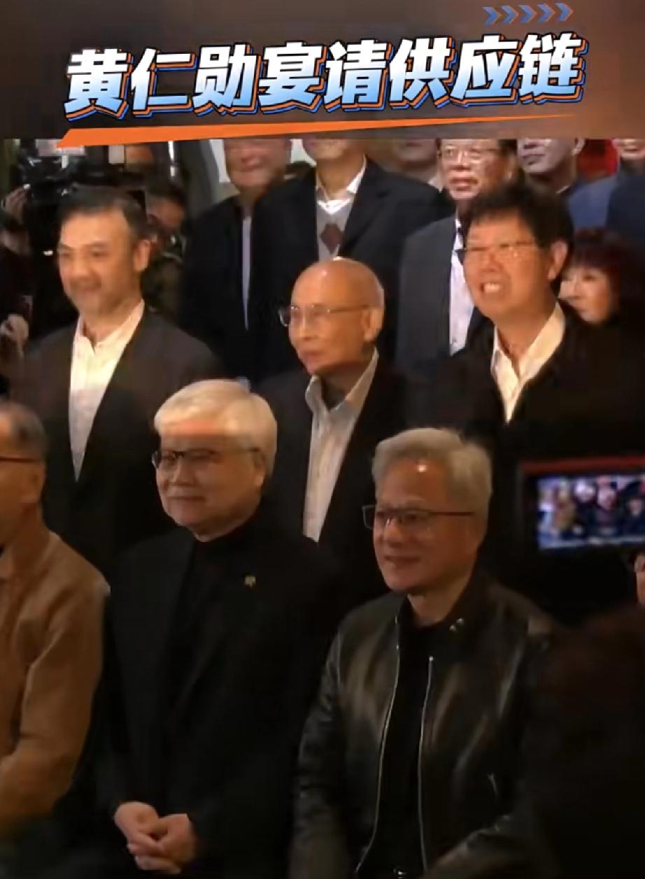 黄仁勋在台湾省宴请科技大佬,他是绝对的C位,富士康现任老板刘扬伟坐在他的身后! 1月31日,黄仁勋在中国台湾一高端餐厅宴请多位科技大佬,再次彰显出他超级富豪的风范。 黄仁勋依旧穿着黑色的皮衣,戴一副眼镜,穿着黑色运动鞋,一身休闲打扮,看着挺舒服的。 虽然他头发全白了,但精气神很好,这几天连着跑了好几个地方,恐怕年轻人也受不了,但他却坚持了下来。 到了台湾省以后,以为他会休息几天,然后再做打算,没想到他接着又开始宴请供应链的科技大佬了。 这次黄仁勋邀请了好多位台湾省的大老板,这些人一看就都是大老板,气质很好,而他们也非常给黄仁勋面子,百忙之中抽空过来参加这个宴会。 黄仁勋最后大合影时,是坐在第1排的最中间的位置,再次彰显了他的身份和地位,确实是C位,虽然其他人也是大佬,但他们都比不上黄仁勋。 毕竟黄仁勋的身价1,550亿美元,不是一般人能比得起的。 不过,黄仁勋身后的富豪当中有一位特别引人关注,就是富士康的现任老板刘扬伟,他戴了一副眼镜文质彬彬,坐在黄仁勋的背后也是焦点人物。 看了这次黄仁勋宴请的科技老板就知道了,黄仁勋真正的高端人脉在这里,而不是其他饭局!
