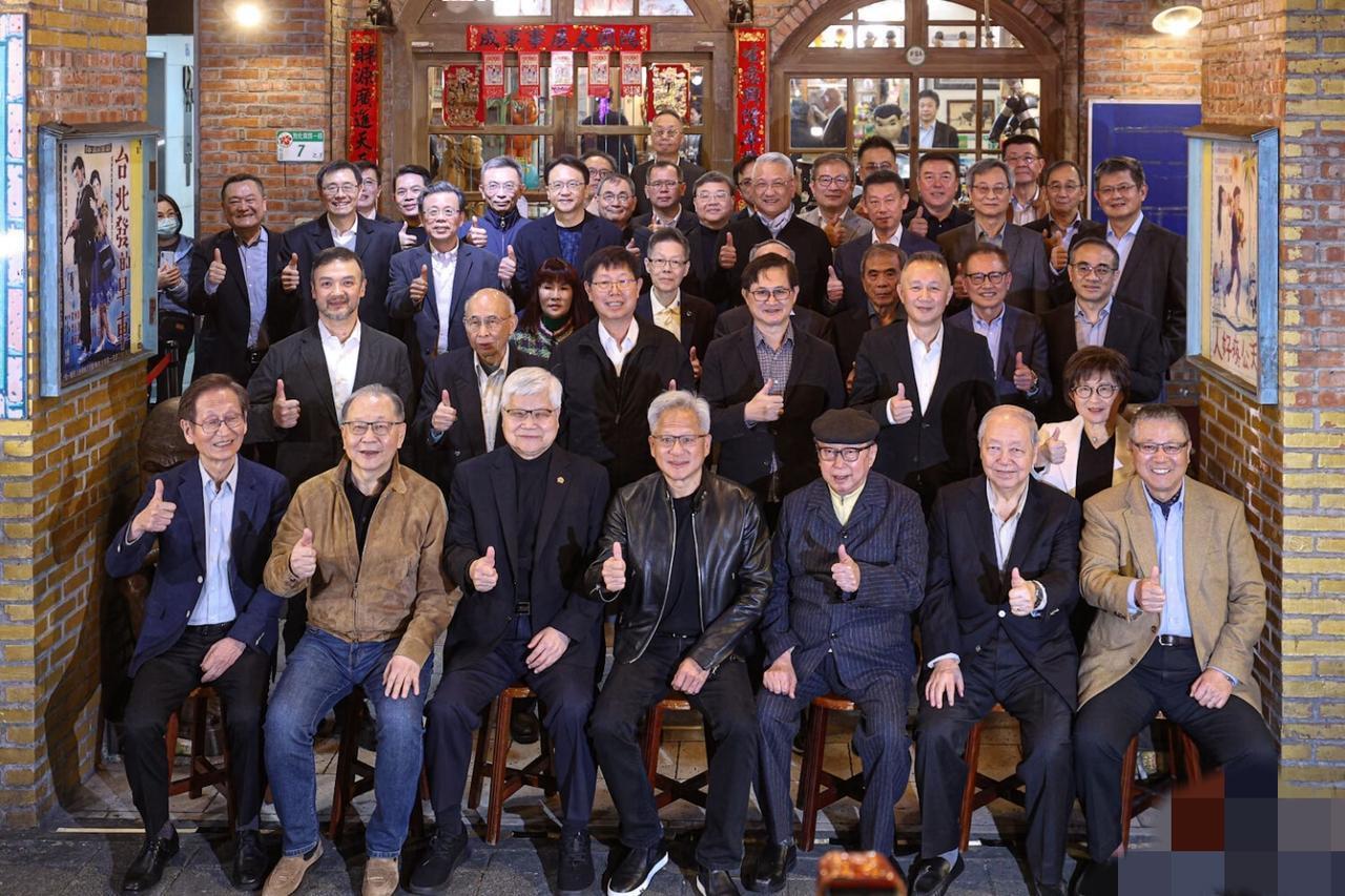 黄仁勋在台湾省宴请科技大佬,他是绝对的C位,富士康现任老板刘扬伟坐在他的身后!