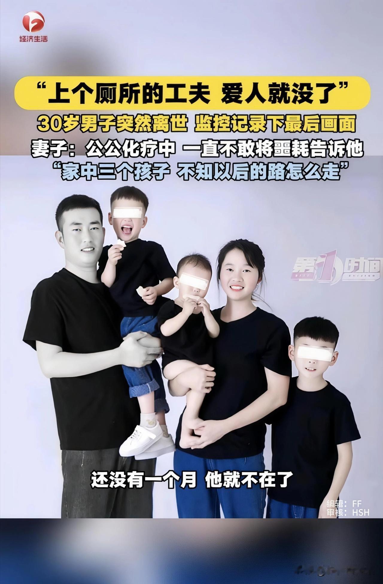 “人不是老了才会死,而是随时都可能死。” 这句话看完河南南阳的这起悲剧,真的瞬间破防! 30岁的顶梁柱,只是起身去工厂上趟厕所,就突然倒地没了生命体征,监控里的背影成了留给家人最后的画面。 事发前他就已经胸痛去医院吊水,却只当是普通小毛病,谁能想到这一转身就是永别。 家里的天直接塌了:男子的父亲还在医院化疗,妻子根本不敢把噩耗告诉老人,三个年幼的孩子还不懂什么是失去,只剩她一个人撑着这破碎的家,想想都心疼。 作为一名关注民生与健康的内容创作者,我看过太多这样的悲剧,每一次都让我忍不住揪心。这起事件最残忍的地方,就在于它的“猝不及防”。我们总以为死亡是遥远的事,是“老了以后”才会面对的结局,却忘了意外和明天,永远不知道哪个会先来。 30岁,正是上有老、下有小的年纪,他的倒下,不是一个生命的逝去,而是一个家庭的崩塌。更让人痛心的是,他此前已经出现了胸痛的预警信号,却被当成了“小毛病”而忽视。这不是个例,而是当下很多年轻人的真实写照:我们习惯了透支身体,对疲劳、疼痛习以为常,直到悲剧发生才追悔莫及。 我自己也有过熬夜加班后心脏突突跳的经历,当时只觉得是累了,现在回想起来才后怕。我们总觉得“年轻就是资本”,却忘了资本也会被挥霍一空。健康不是用来透支的,而是用来守护的。别等失去了才明白,平凡的日常,就是最大的幸福。