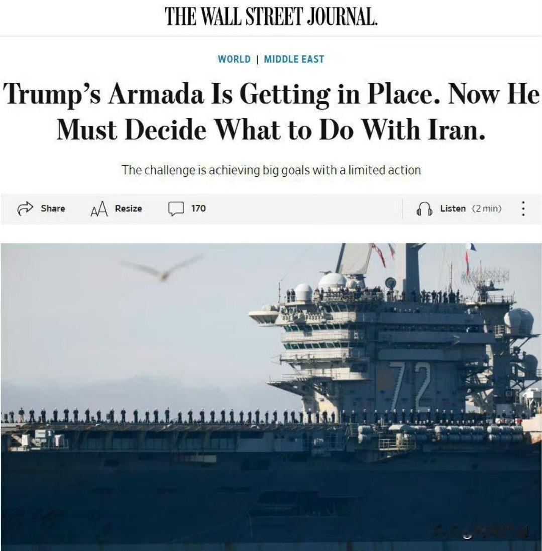 “大人物”特朗普的拍板时刻到了。 《华尔街日报》称,五角大楼与白宫已向他呈上对伊动武的整套选项: - “宏大方案”:大规模空袭,同时打击伊朗政权与伊斯兰革命卫队(IRGC)目标; - “有限方案”:只打象征性目标,为后续升级留余地,迫使伊朗接受特朗普想要的协议。 若想“抓捕哈梅内伊”,难度远高于对马杜罗的行动——伊朗安保层级更高、地理条件更复杂。特朗普故意使用模糊措辞,让外界摸不清美方最终目标与具体作战计划。